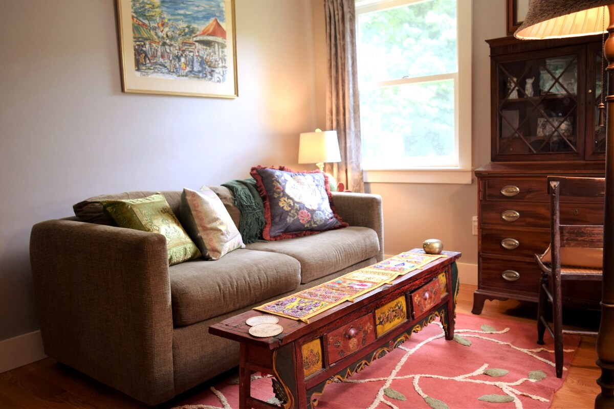 Te damos la bienvenida a Lion's Den en Amherst Inn. Este primer piso, un dormitorio y un baño, cuenta con una cama doble y una sala de estar. Ofrecemos un desayuno fresco y completo todas las mañanas. La casa está a poca distancia del centro de Amherst. Aparcamiento en el lugar disponible.