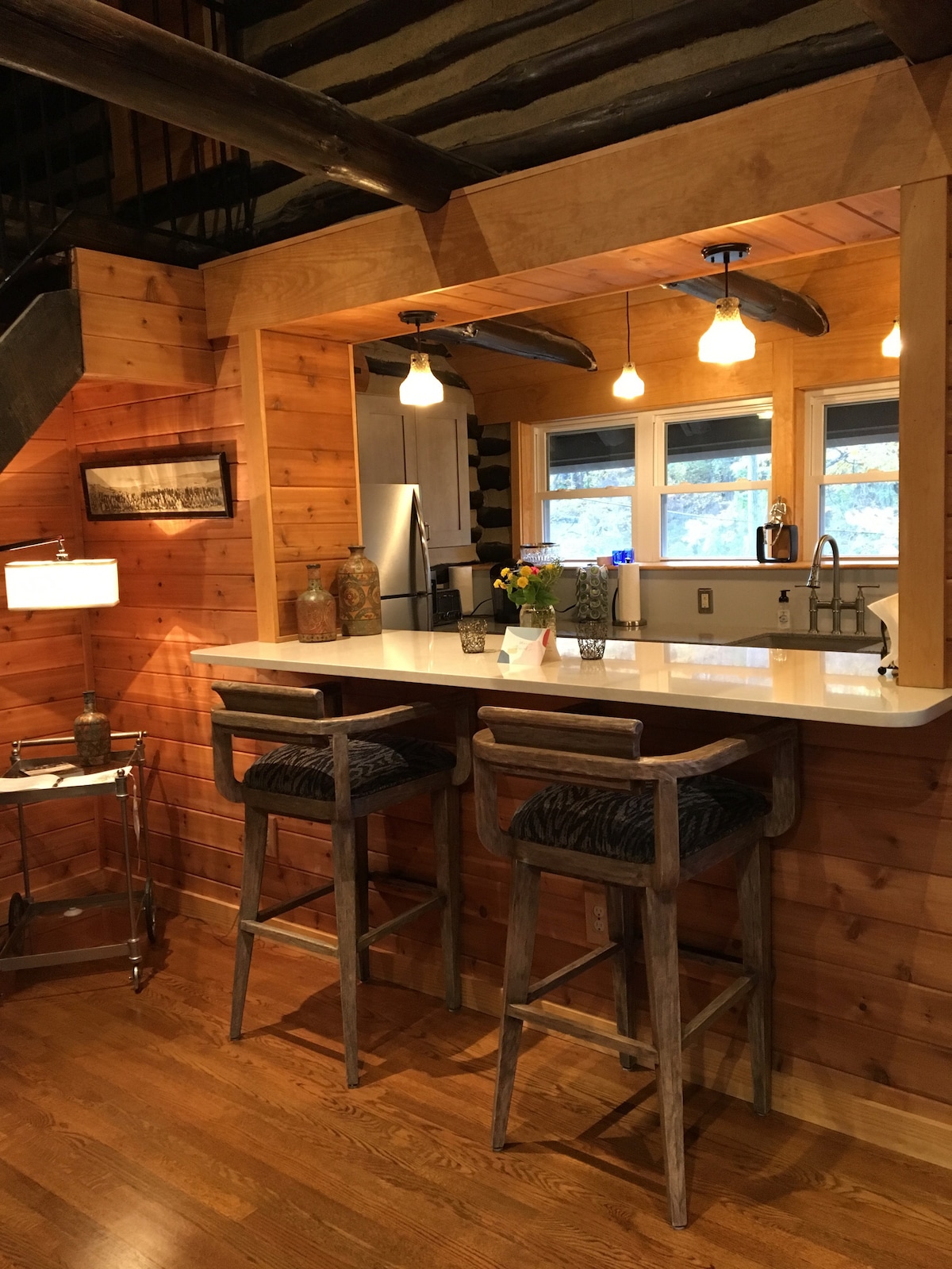 The original log cabin was built in 1936 by the Civilian Conservation Corps (CCC). These cabins were built after the Blue Ridge Parkway was laid in 1935, which is just down the street. With love and attention our cabin's renovations were complete in 2017. We kept the original log walls to add a rustic feel to the contemporary, crisp clean decor. The cottage overlooks the babbling waters of Back Creek but is just a 5 minute drive to the grocery store, private yet convenient.