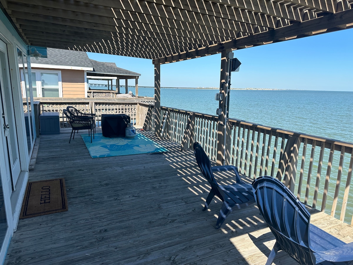 ¡Olvídate de tus preocupaciones en este espacio espacioso y sereno! *¡Pesca justo fuera de tu cubierta! *Los amaneceres/puestas de sol más increíbles *Observación de aves/recolección de conchas *Solo se admiten $ 75 *Tarifa de limpieza básica: $165 * A un par de cuadras de la playa de arena y más pesca increíble en San Luis Pass. * ¡Vistas sin obstáculos por kilómetros! *Asadores de carbón y de propano * Zona para fogatas de gas *Se proporciona gas * Ventanas del piso al techo remodeladas. Pintura y pisos nuevos. Camas/ muebles y decoración nuevos. *Keurig and a Mr. Coffee *lavadora/secadora