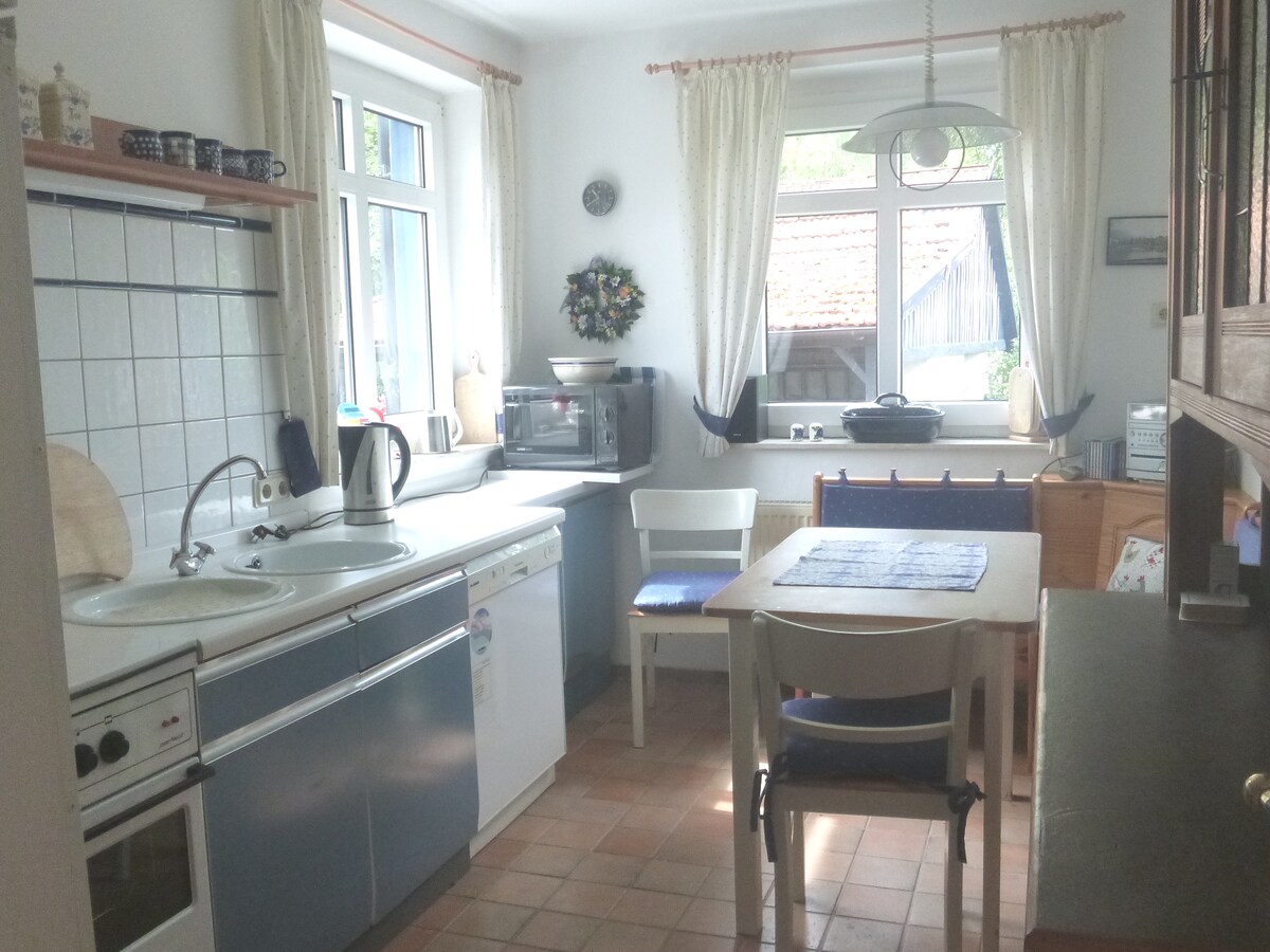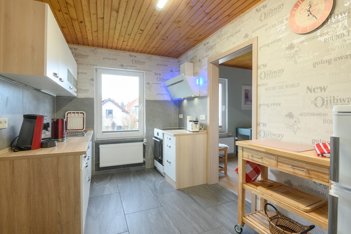 Te damos la bienvenida a nuestro departamento amueblado con cariño en un área rural. Ven a relajarte en el campo en el hermoso pueblo de Arenshausen. El borde del bosque está a solo unos 100 metros de distancia y te invita a dar largos paseos. Además, a menudo tenemos varios animales en la granja o en el pasto adyacente con los que se pueden familiarizar. También hay una estación de tren, una panadería y un supermercado a solo unos minutos a pie.