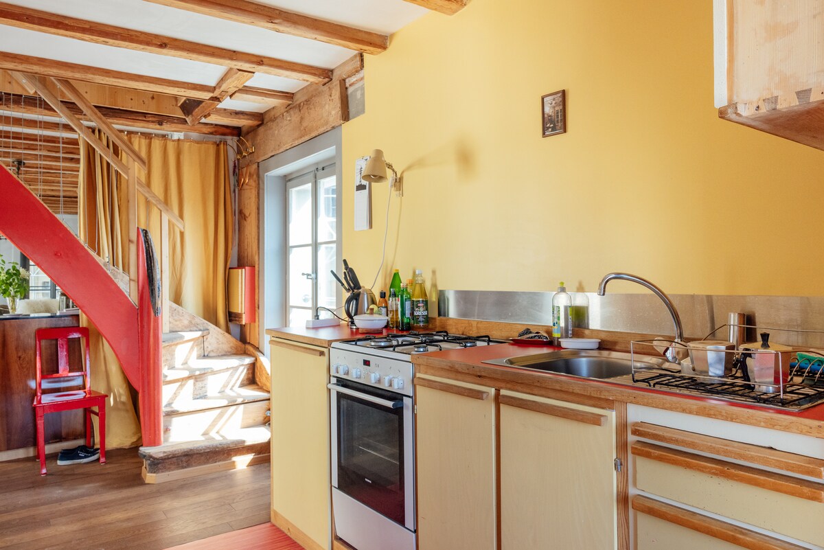 Un lugar decente para dormir con un precio asequible en el centro de "Bourg". La ubicación en el acantilado del centro medieval de Friburgo con impresionantes vistas. La energía creativa de dos plantas extraordinarias con detalles vintage y contemporáneos. En el piso 0 hay una cafetería/bistró - La Coutellerie (abierto hasta la medianoche).