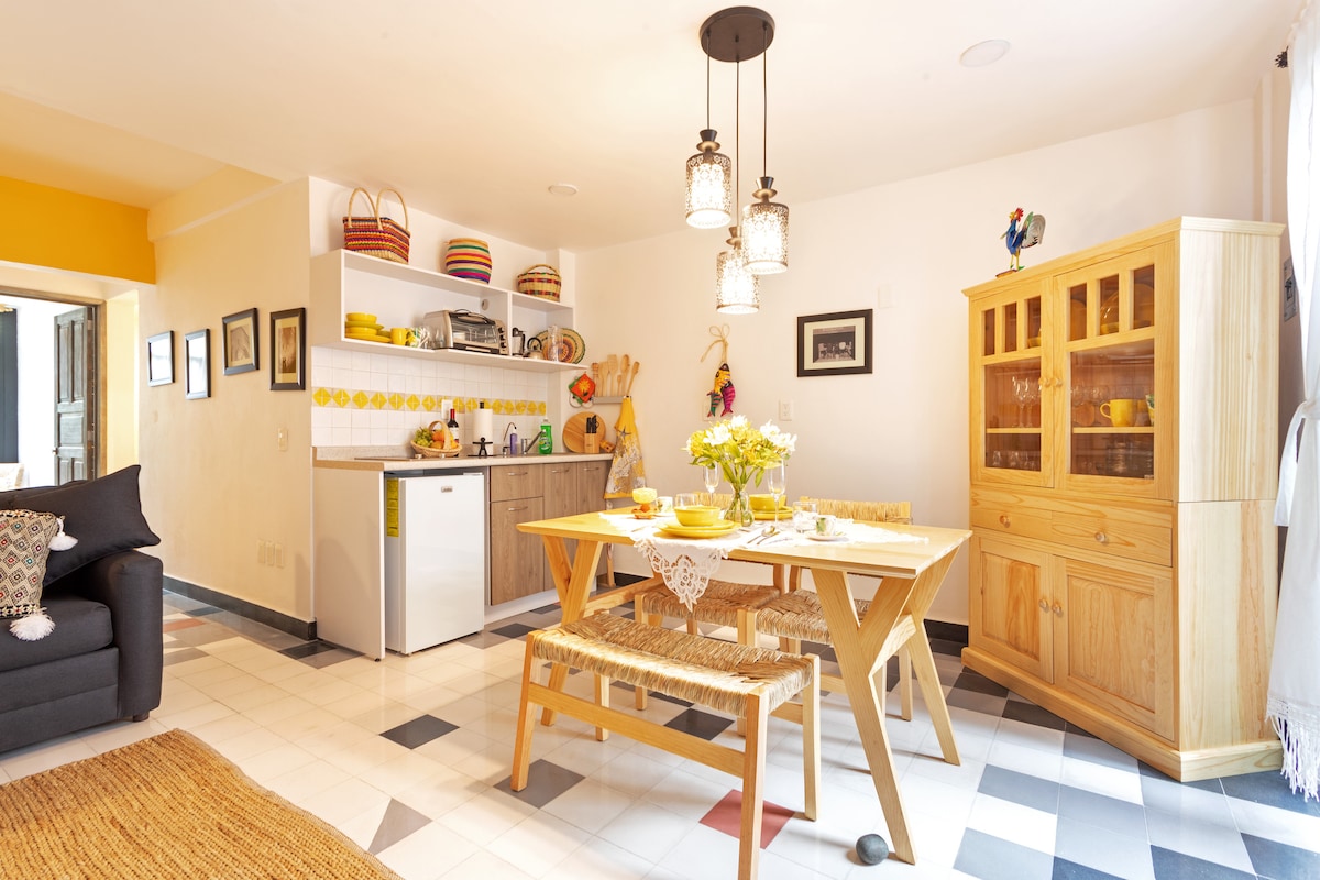 Bienvenidos a mi casa! We have for you a charming little apartment in the center of Coyoacán. It has everything you need for a pleasant stay: TV, WiFi, Kitchen, Toiletries and the best vibe. We are located on a peaceful/quiet street. English, Spanish, French, and Italian spoken Located close to UNAM & Hospital de la Ceguera and Estadio Azteca.