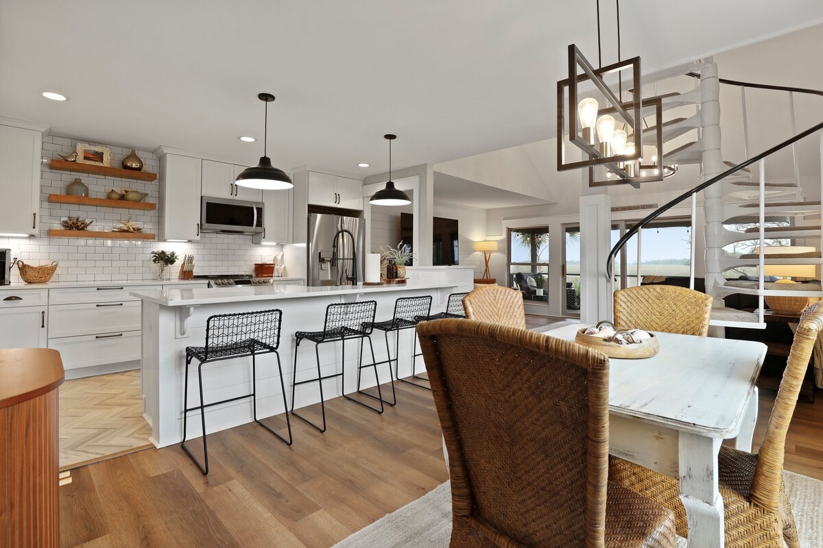 ¡Disfruta de una escapada como ninguna otra mientras disfrutas de vistas de un millón de dólares sin pagar un precio de un millón de dólares! Nuestra casa unifamiliar de 2 pisos en el paraíso rural bajo de la isla Fripp ofrece impresionantes y serenas vistas al pantano de las hermosas puestas de sol orientadas al oeste que pintan el cielo y está a 3 minutos en carrito de golf de varios puntos de acceso a la playa. Este alojamiento único es el lugar perfecto para que las familias disfruten de todas las grandes aventuras en Fripp Island. ¡Así que ven y descansa en Salt & Light!