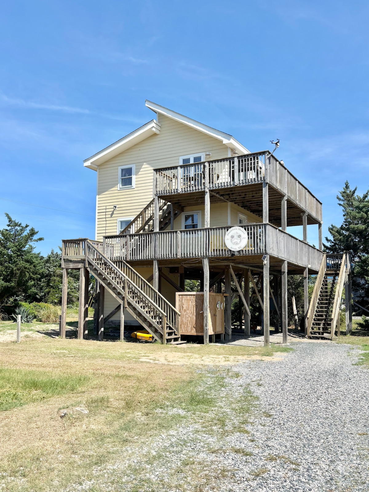 Welcome to the "OBX Treehouse," only steps away from the most beautiful stretch of beach in the Outer Banks north of Avon's pier. Explore all of the great restaurants, shops, activities, and bars nearby. The house has 2 bedrooms, 1 full bathroom, 1 half bathroom, and an outdoor shower. Enjoy the 55” 4K Smart TV and new upper deck where you can watch the sunrise over the ocean and sunset over the sound. Please let us know if you have any questions or if you want some recommendations. Thank you!
