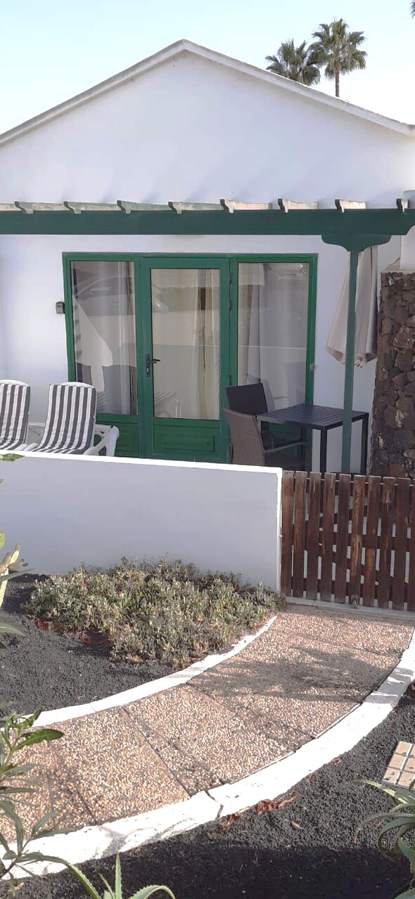 🌴 Acogedor y luminoso bungalow a solo 7 min de la playa 🌞 Relájate en tu terraza privada con tumbonas, palmera y vistas al jardín. Salón con aire acondicionado, cocina completa y TV con canales británicos y alemanes en todas las estancias. Ubicación tranquila pero céntrica, perfecta para parejas, familias y mayores. Check-in autónomo, parking gratuito, piscina compartida, pista de tenis y un bar animado con música en vivo y karaoke.