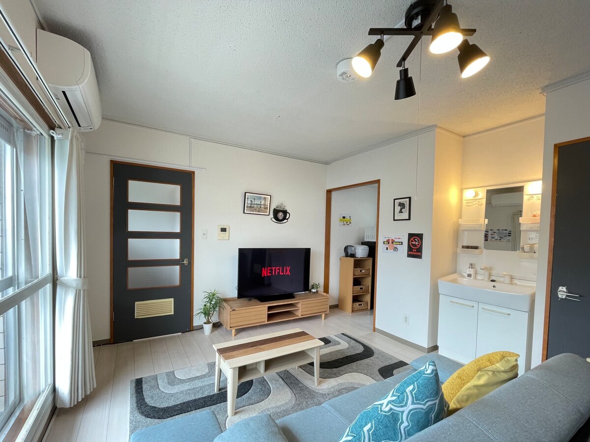 ¡Buena ubicación! ¡Se tarda 12 minutos en metro desde la estación más cercana hasta la estación de Odori en el、 centro! Habitación acogedora. 1. La habitación tiene un futón doble y un futón individual. 2. La habitación tiene un calentador y dos ventiladores, y un televisor, lavadora, microondas, nevera, secador de pelo, champú/acondicionador y jabón corporal. 3. Puedes usar la cocina, la olla y la sartén de IH para cocinar (se requiere reserva anticipada). 4. La estación de metro más cercana es Nango-Jusan (13) Come Station, a 5 minutos a pie de la habitación. 5. Wifi gratuito