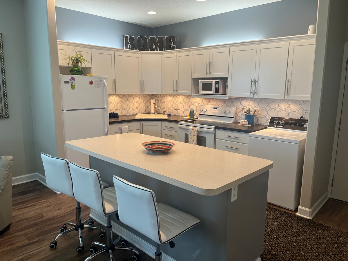 We welcome you to relax in this calm, stylish space. Super-clean! Luxurious therapeutic king bed! 2nd BR is queen. Very comfortable setting watching Smart TV. Two dining areas. Fully furnished kitchen & pantry. Piano for the music-lovers! Patio and backyard. Also picnic tables & grill in the community area. Convenient parking in front of the condo. Quiet, safe community but also near to shopping and restaurants. Pet-free and no smoking, please. Longer stays can be arranged.