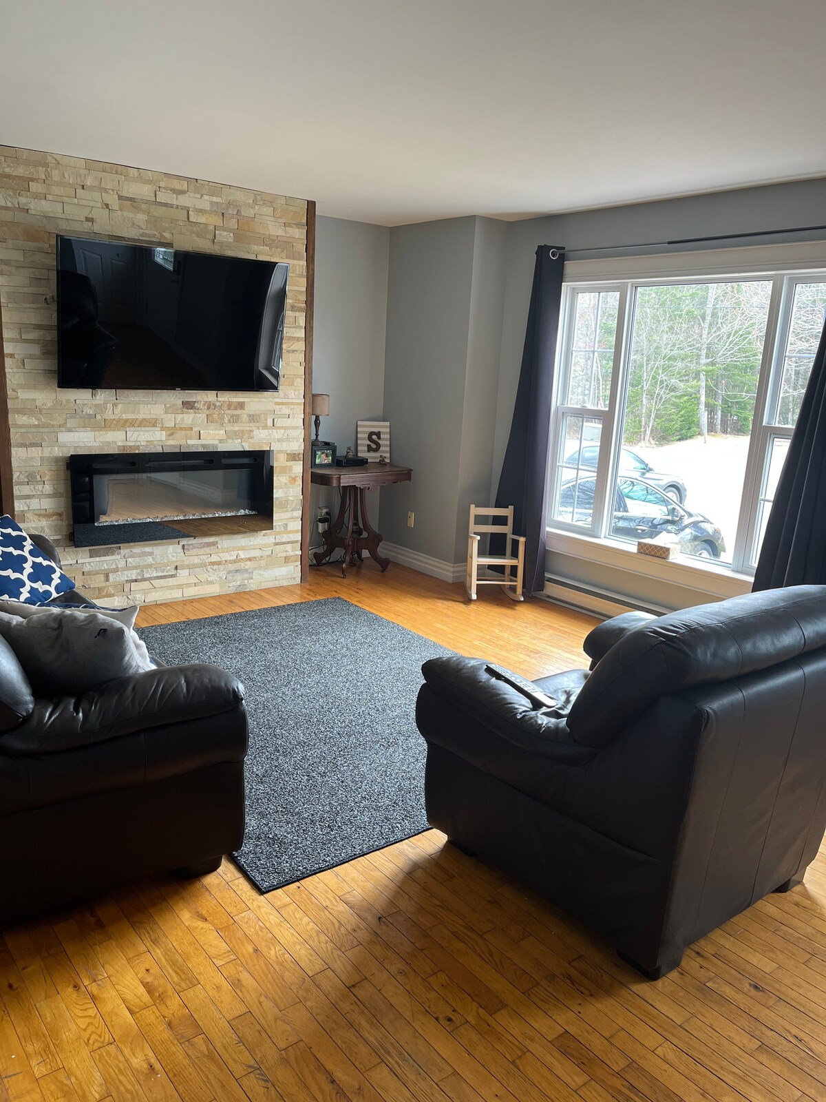 Nuestro apartamento de arriba está separado de la casa y cuenta con una sala de estar de concepto abierto (56 metros cuadrados). Sala de estar con TV y chimenea, dormitorio, cocina con isla y zona de comedor, escritorio o tocador, lavadora y secadora, baño con gran ducha. Barrio tranquilo, muchos senderos, tiendas y aventuras cerca. Magic Mountain, Parlee Beach, a 5-8 minutos del centro de Moncton - Avenir Centre. A 15 minutos del aeropuerto. A 30 minutos de Shediac o Hopewell Cape Rocks, a 1,5 horas del Parque Nacional Fundy. Acceso con código clave.