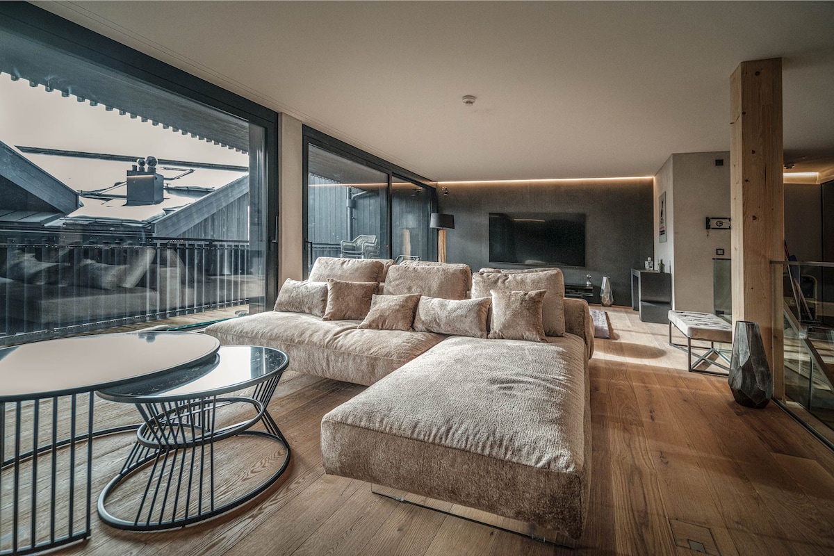 Relájate en este Rifugio único. Apartamento de 2 habitaciones y un aseo totalmente renovado en 2020, cuyo diseño interior ha sido completamente rediseñado. Reformado como loft con los materiales más nobles (granito Valser, parqué de palacio, mucha madera vieja, bañera independiente, chimenea de hierro abierta por dos lados, grifería de diseño). Con terraza y jardín protegidos. Ubicación soleada y tranquila. Entrada privada, sauna en el edificio anexo. Acceso directo a las pistas de esquí o autobús de esquí a tres minutos.