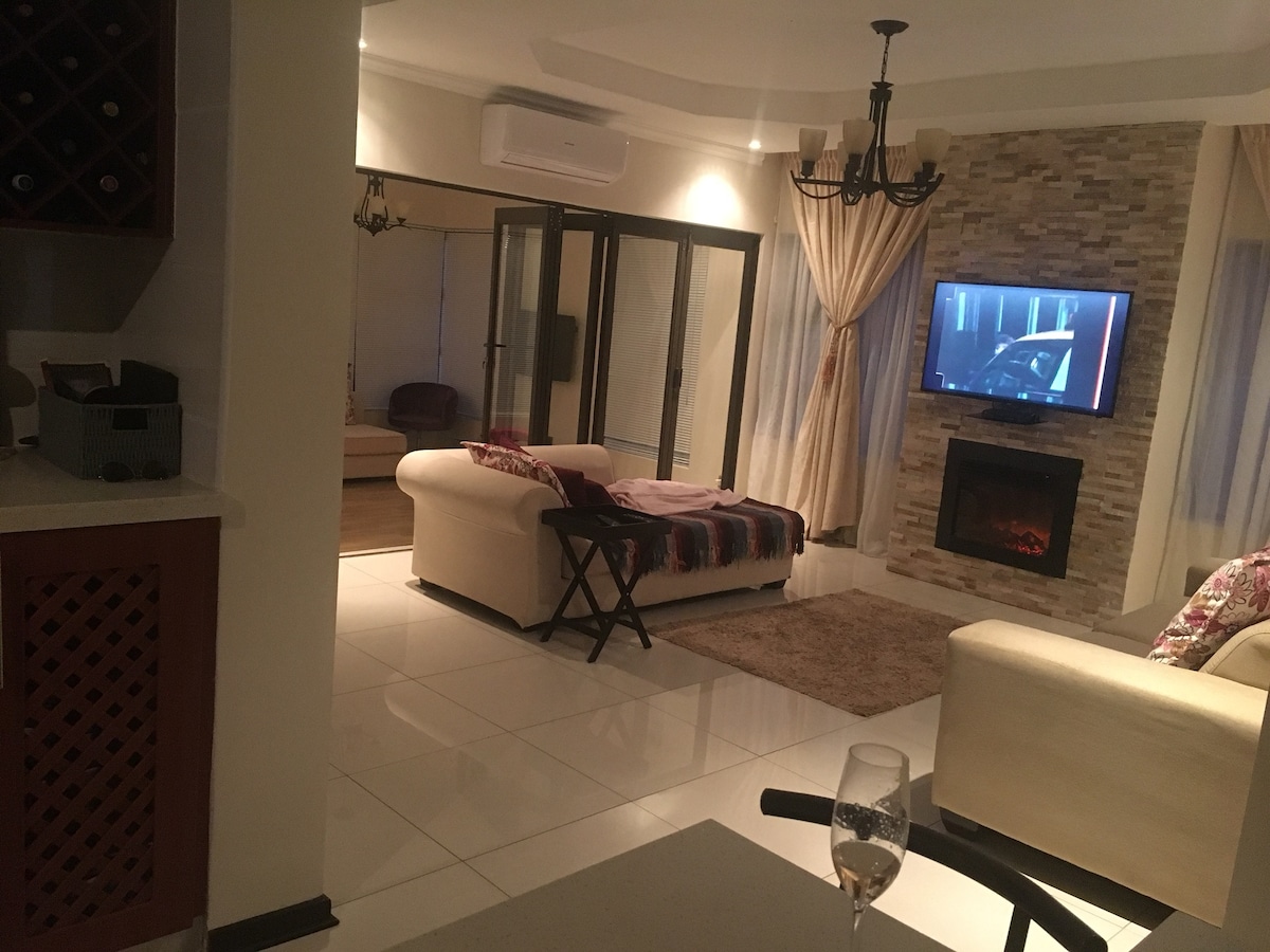 Apartamento de dos dormitorios y un baño en un complejo seguro, tranquilo y familiar. Amueblado con aire acondicionado y chimenea. Ubicado en un barrio seguro, con guardia de seguridad nocturno. Piscina compartida para tu disfrute. Cerca de un bonito centro comercial con restaurantes y las principales tiendas de comestibles (centro comercial Riverwalk). Perfecto para una familia que viaja con niños o para un viaje de negocios. Se aceptan estancias largas :)