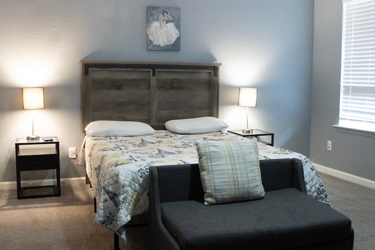 ¡Comodidad elegante a pocos minutos de FSU, FAMU y el centro de Tallahassee! Este refugio cuidadosamente diseñado ofrece todas las comodidades para una estancia de 5 estrellas, además de acceso a una piscina comunitaria y un gimnasio. A solo 11 minutos de College Town y 14 del Capitolio, con un montón de restaurantes y tiendas cerca. Tanto si estás aquí por trabajo, por estudios o por placer, este elegante alojamiento tiene todo lo que necesitas para sentirte como en casa.
