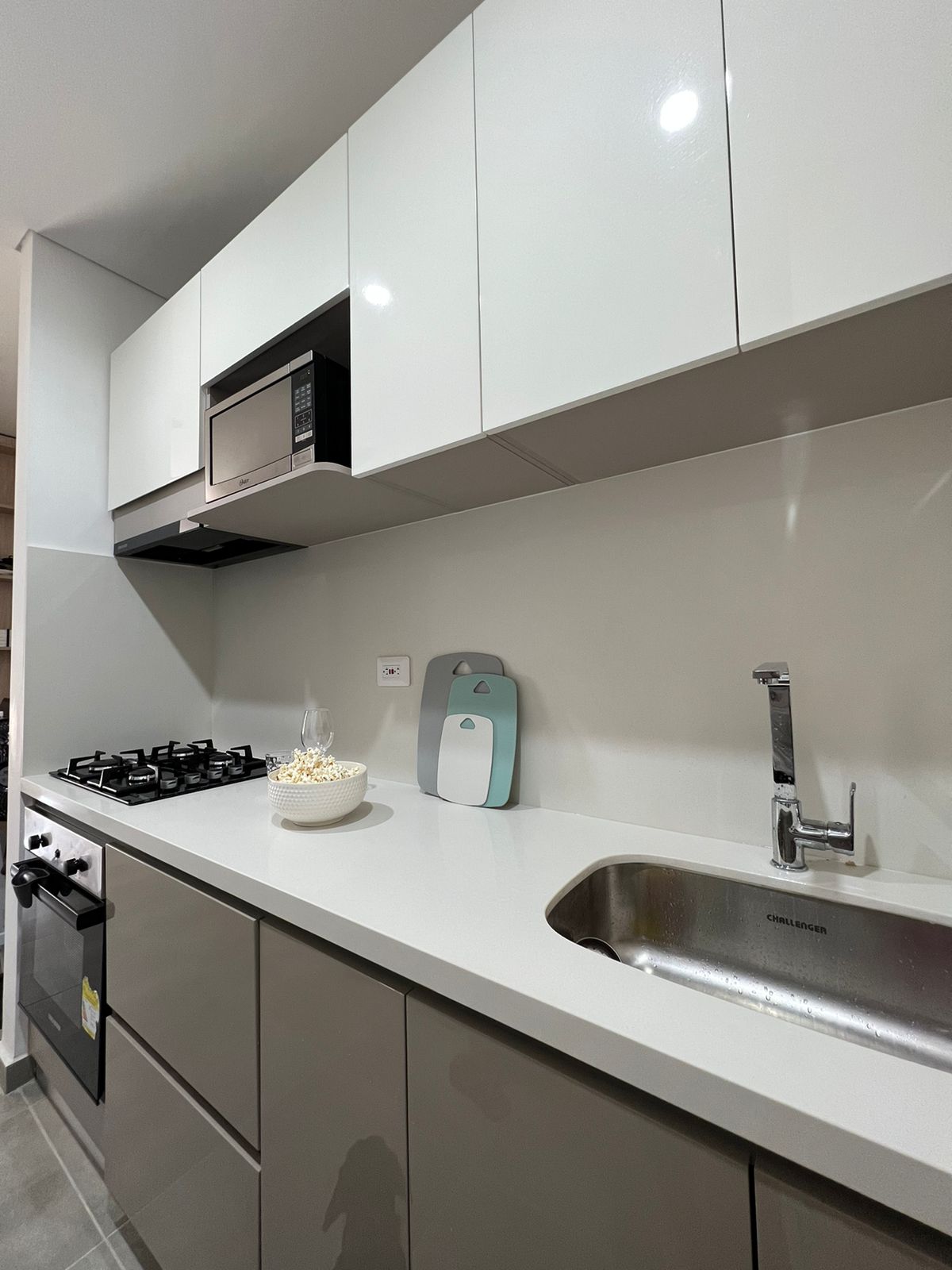 Disfruta inolvidables momentos Santa Marta. Hermoso Apartamento, salida directa al mar, excelentes amenidades piscinas, jacuzzis, gym, senderos naturales, solárium y zonas infantiles. 2 habitaciones y un espacio privado con sofá cama o estudio, 2 baños con ducha, cocina dotada, calentador, lavadora y secadoras. Vista infinita al Mar y la Sierra desde nuestro balcón Piso 19 disfrutaras atardeceres mágicos, acceso directo a piscinas, jacuzzis, zona infantil. Accesible a movilidad reducida.