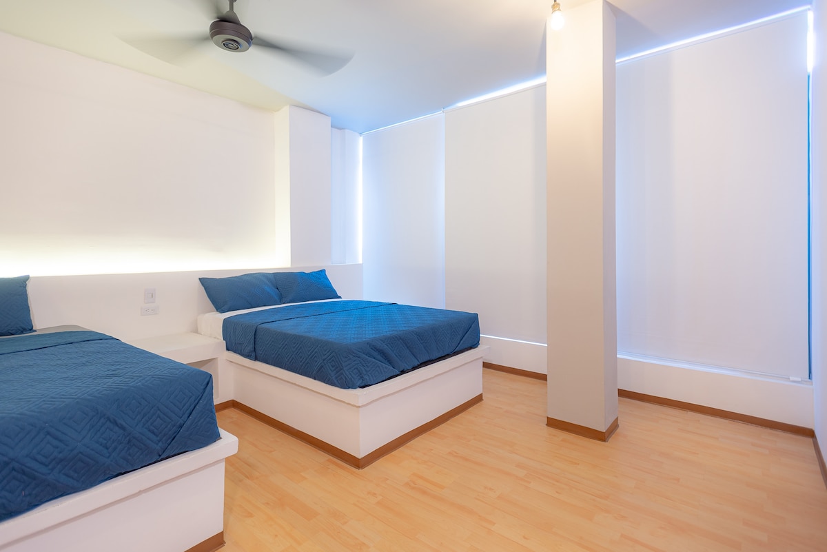 Ubicado en el Rodadero sur, en zona tranquila residencial, a una cuadra de la playa (Rodadero sur) y contiguo a un supermercado. Amplios espacios para parqueo sobre la calle frente a la propiedad. Cuenta con 3 camas dobles en un solo espacio abierto, (pensado en familias). Cuenta con 2 baños, TV y wifi. Excelentes restaurantes a poca distancia. El acceso es con clave y es una unidad de pocos apartamentos, sin recepcion, por lo cual se cuenta con mucha privacidad y tranquilidad.