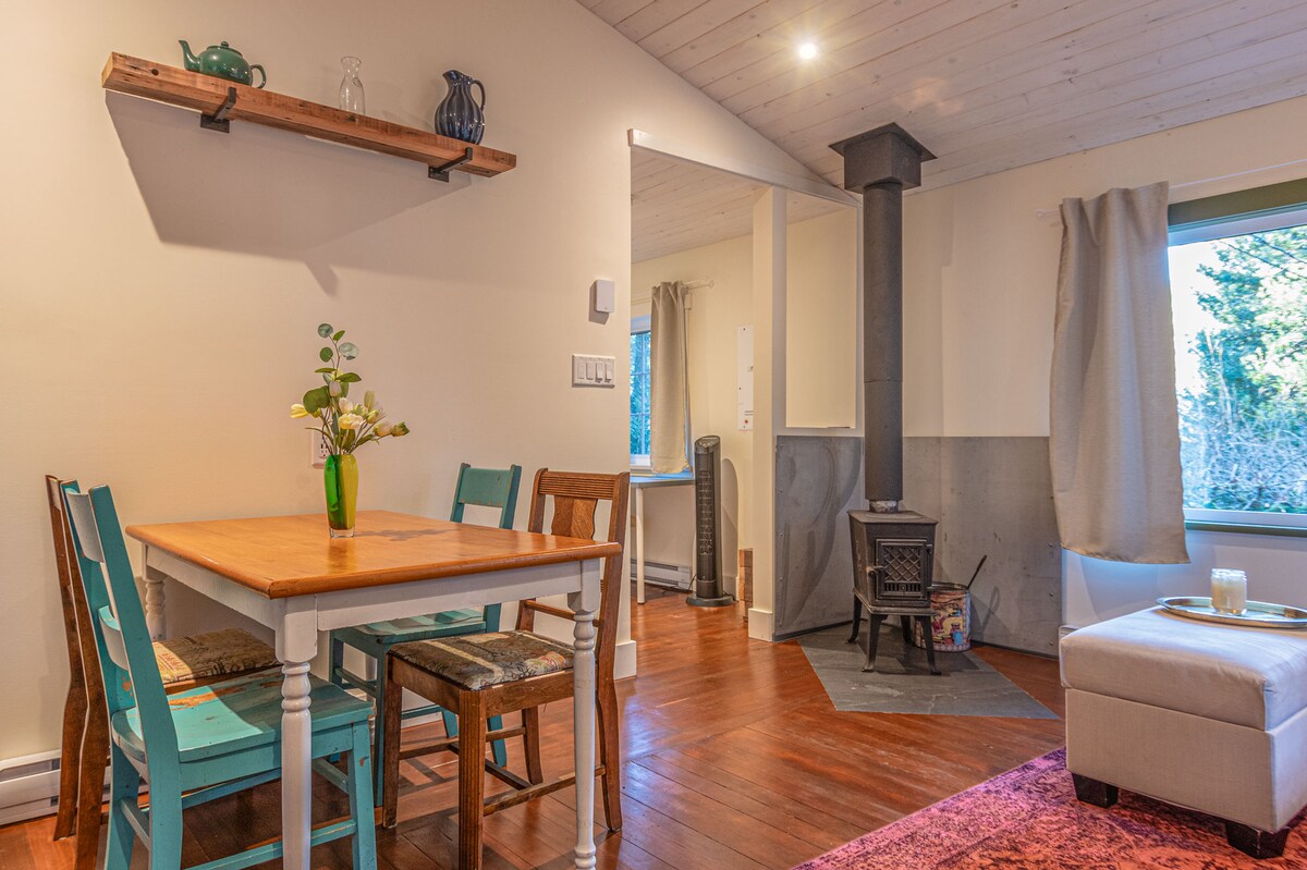 Disfruta de la sencillez de este alojamiento tranquilo y céntrico. A unos 10 minutos a pie de la terminal de Sturdies Bay, ven a relajarte en este acogedor hogar recién renovado lejos de casa. Quédate unos días, una semana o incluso más y disfruta de todo lo que Galiano tiene para ofrecer. Después de cocinar una buena comida con electrodomésticos nuevos, disfruta de una noche tranquila con la estufa de leña... ¡o tal vez dirígete al Hummingbird y deja que alguien cocine por ti! ¡Galiano te espera!