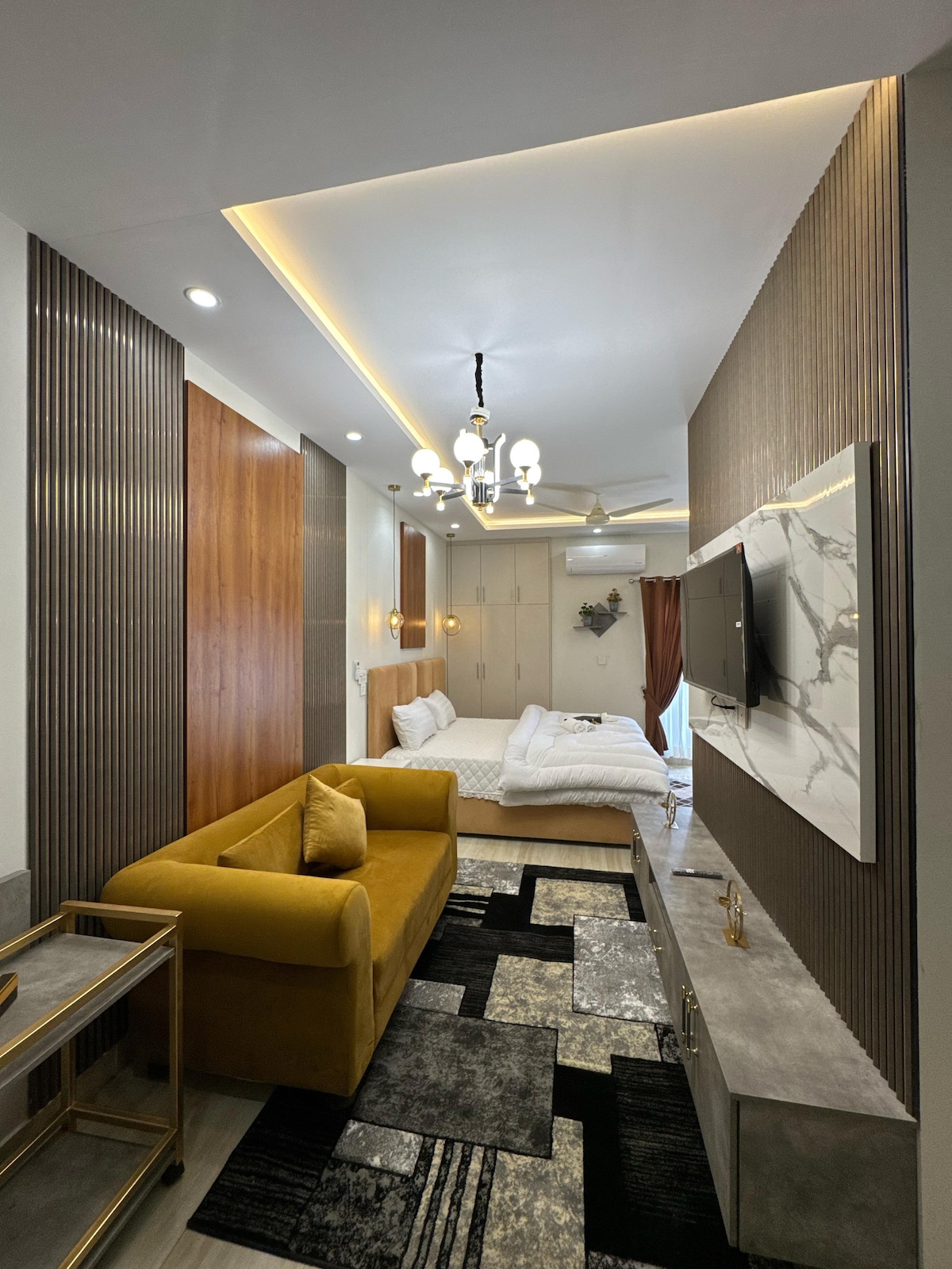 This Ultra Modern apartment offers state of the art aesthetics for those who value the finer details🏡. Conveniently located near the Islamabad M2 toll plaza. Enjoy quick 7 minute access to the airport🛫, making it ideal for travelers who value convenience and style. With an array of all restaurants with delivering at your doorstep🍕🍔 Please note, as this is a residential building, partying, making loud noise, and stays by non married couples are prohibited. Looking forward to hosting you😊