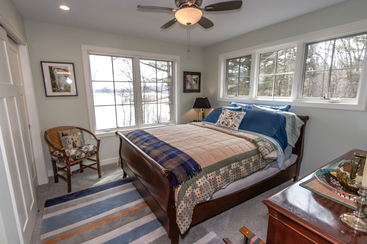 FESTIVAL DE LOS TULIPANES 6 de mayo: ¡mímate con lujo, incluido un desayuno inglés completo! La suite Garden cuenta con impresionantes vistas al río Kalamazoo y exuberantes paisajes desde el dormitorio y la terraza privada. La suite, luminosa y acogedora, cuenta con una cama tamaño queen, un vestidor con mininevera, un baño privado con ducha y es la única suite que no requiere subir escaleras. A pocos metros de la sala de estar de la zona común y la despensa comunitaria. El lujo, la privacidad y la hospitalidad te esperan.