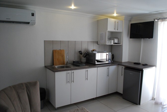 Lafenis Selfsorg offers 2 self-catering units, which can accommodate up to 5 guests, on the host's property in a quiet suburb of Jan Kempdorp. It is ideal for travelers passing through and looking for safe comfortable overnight stay.The units also offer air-conditioning, selected DSTV channels or Smart TV with streaming facility, free WiFi, and a work desk, making them ideal for business travelers. Private braai facilities and secure parking under a shade net are provided behind a locked gate.