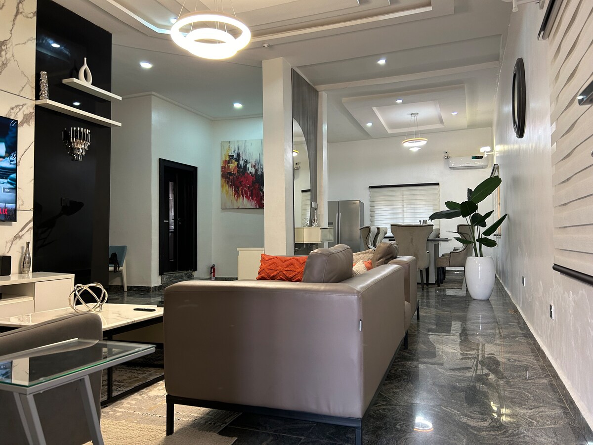 Disfruta de una tarifa diaria del 10% para una estancia mínima de 7 noches. Relájate y refréscate en este espacio tranquilo y con estilo en el exclusivo, montañoso y seguro barrio de Guzape, a menudo conocido como Beverly Hills de Nigeria. La propiedad se encuentra en una comunidad cerrada y vigilada.