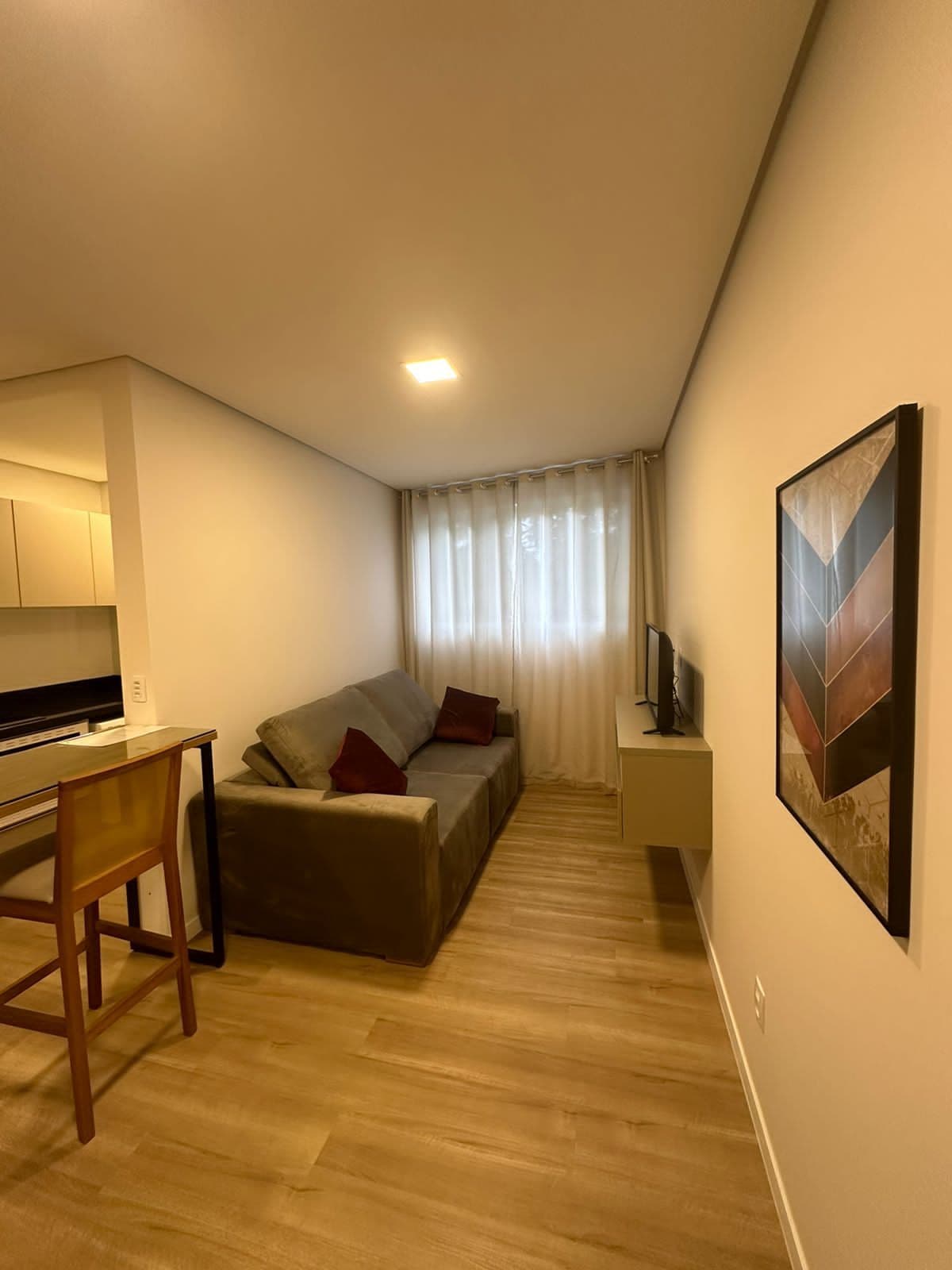 Apartamento NUEVO y acogedor en el barrio de Bom Retiro, con excelente ubicación: cerca de mercados, panaderías, centro comercial Garten, aeropuerto y zona industrial de Joinville. ¡Apartamento totalmente equipado, con todo nuevo! - Sala con smart tv - Cocina equipada con utensilios y electrodomésticos nuevos (cafetera, sandwichera, hervidor eléctrico) - Lavandería con lavadora y secadora - Baño equipado con jabón, champú y secador de pelo - Aire acondicionado en la sala y el dormitorio - Garaje privado y cubierto