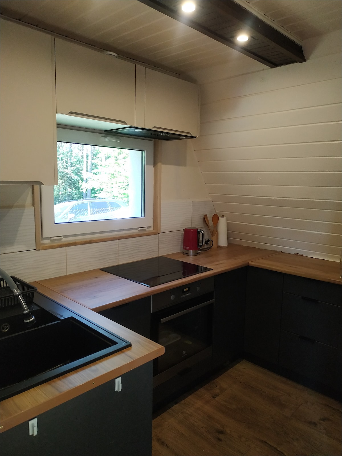 Estudio de dos niveles, superficie total de aprox. 40 m2, altura 7 m. Sala de estar con cocina, dormitorio y zona de trabajo en una entreplanta elevada, baño, vestíbulo, terraza, aparcamiento bajo la puerta de entrada. Apartamento independiente, con entrada independiente. Tranquilidad y silencio. Hermosa zona verde. La casa está situada junto al río. Una zona recreativa muy grande. EL PRECIO DEPENDE DEL NÚMERO DE PERSONAS. AL HACER LA RESERVA, POR FAVOR, INDIQUE EL NÚMERO CORRECTO DE PERSONAS.