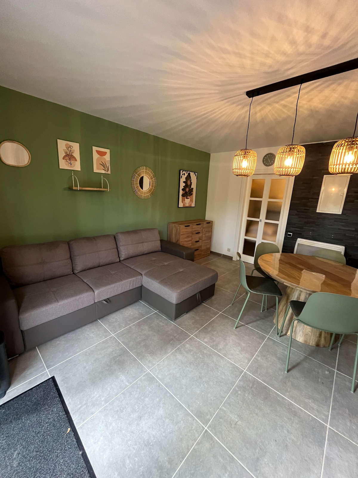 A 2 minutos de Chooz y 5 minutos de Givet, situado en Foisches en la antigua escuela del pueblo, podrá disfrutar de la tranquilidad del pueblo, el paisaje y sus paseos. Estudio de 28 m² con todas las comodidades recientemente renovado - cuarto de baño con ducha privada y lavadora - cocina equipada con horno multifunción, placa, eléctrica, campana extractora, cafetera, nevera/congelador - sala de estar con TV naranja - Cama de matrimonio 160x200 - Se proporcionan sábanas y toallas Aparcamiento gratuito Sin sal, pimienta, aceite disponible