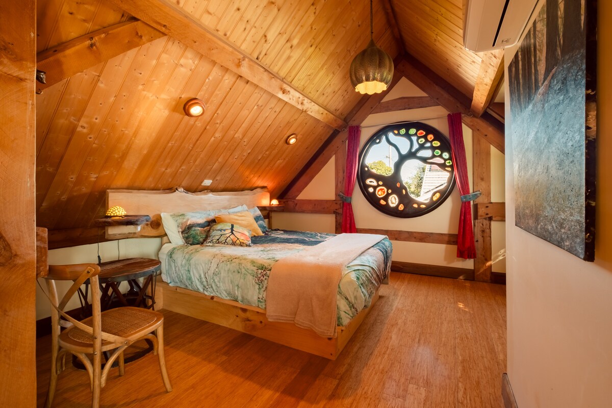 «Leafy Retreat» es un espectacular bungalow privado de madera y luz de plomo inspirado en el Art Deco/Nouveau/Artesanía. Rodeado de jardines intrigantes y espacios privados, senderos caprichosos y fantásticos elementos creativos. Construido y adornado a mano por los anfitriones que han recopilado artículos únicos durante 20 años para colocarlos en esta vivienda única. ¡Ven y disfruta de un largo baño en nuestro baño de piedra! NOTA: Leafy Retreat es muy privado y se encuentra en la parte trasera de la casa de los anfitriones en una calle suburbana muy tranquila.