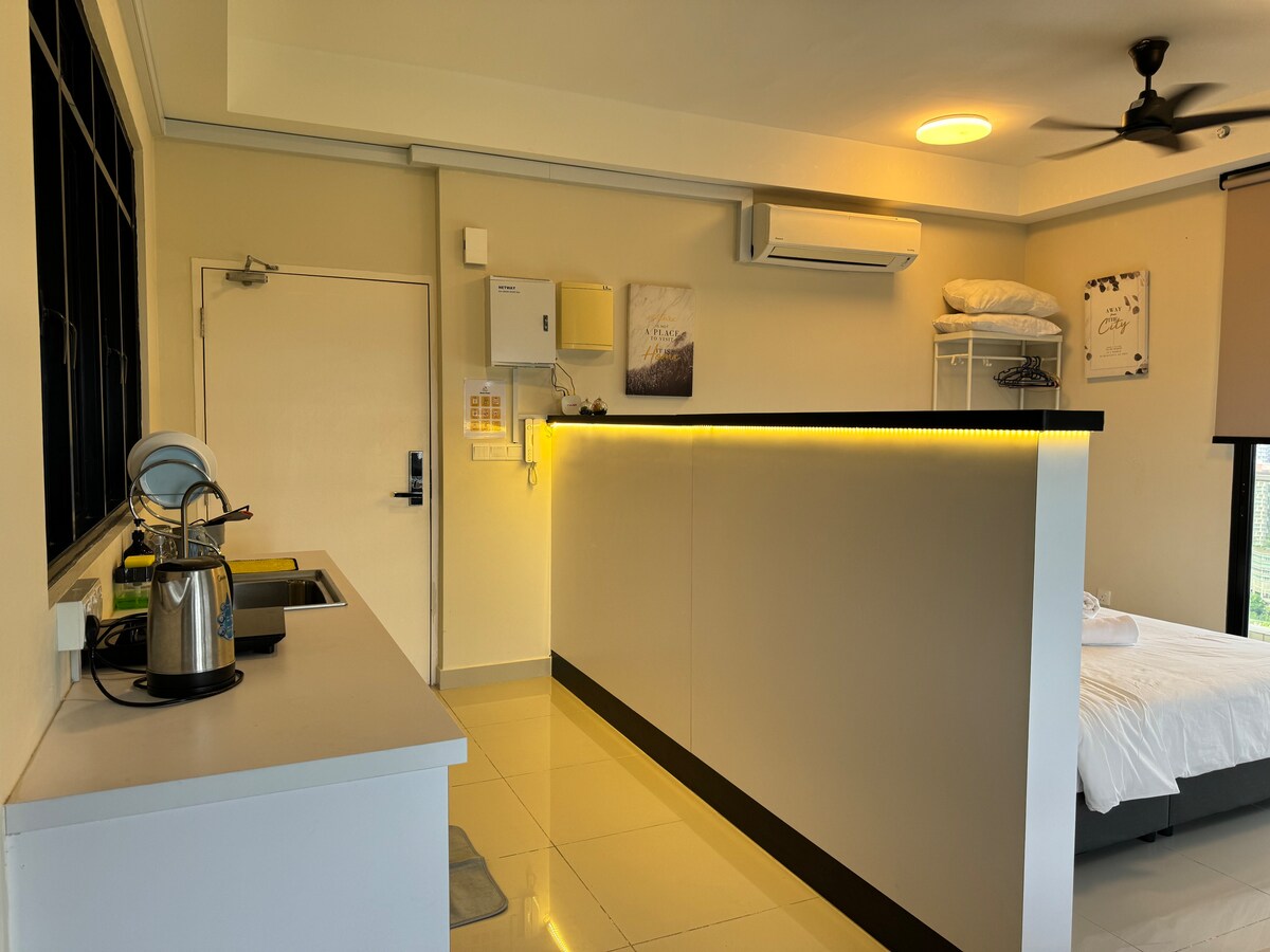 D'Pristine está estratégicamente situado en Medini, dentro de Nusajaya, a poca distancia a pie de Legoland, Mall of Medini y Gleneagles Hospital. A solo 5-8 minutos en coche de lugares de interés como Eco Botanic City, Sunway Big Box Retail Park, Puteri Harbour, Sunway Citrine Hub, etc. El lugar es adecuado para parejas, familias con hijos, aventureros solitarios y viajeros de negocios. Ven y disfruta de este acogedor y tranquilo apartamento con un ambiente acogedor para los niños. Te sentirás como en tu propio hogar.