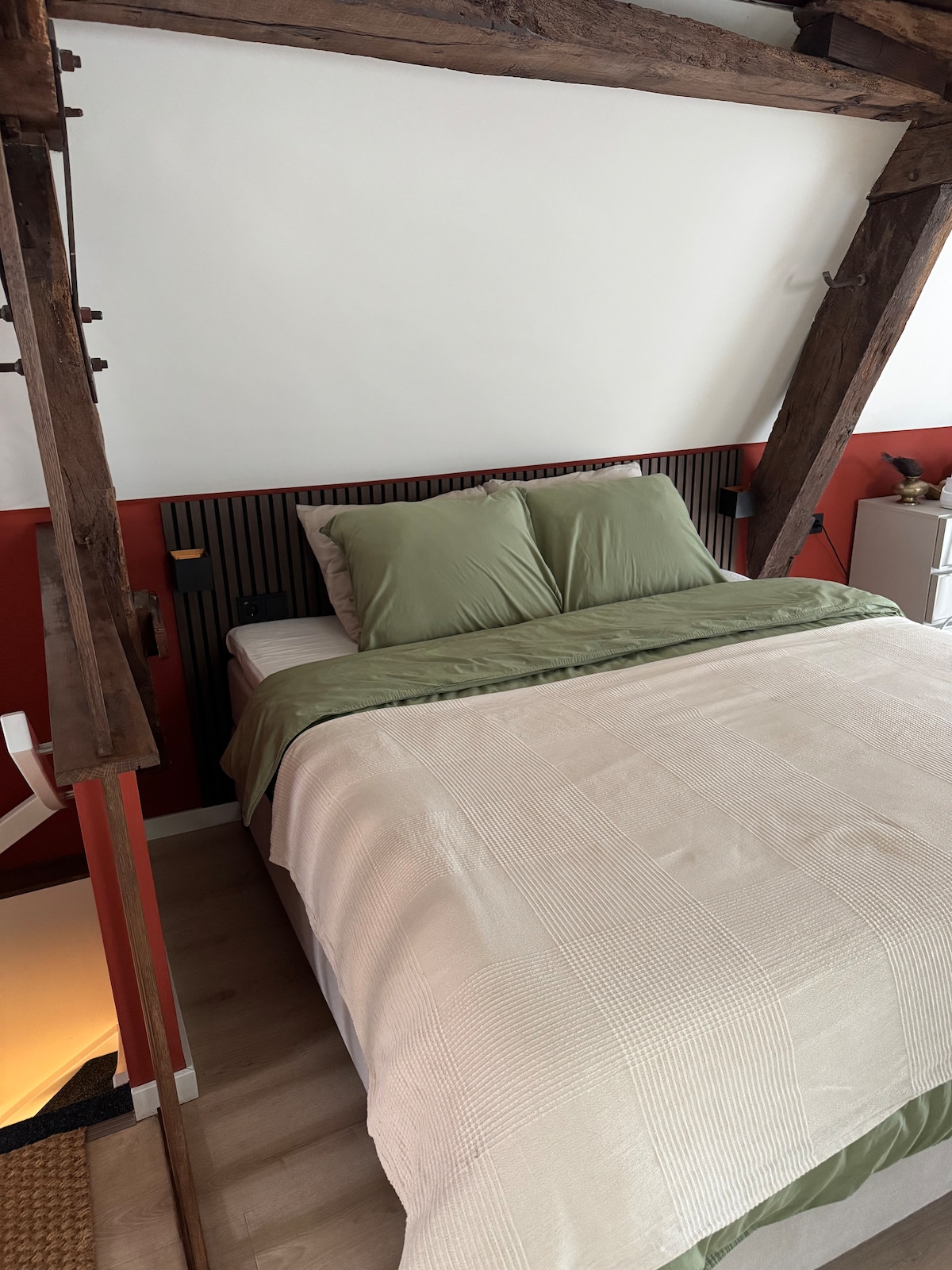 Un estudio autónomo muy acogedor, justo en el centro de Hilversum. Estamos a 5 minutos a pie de la zona comercial y la estación y a 20 minutos de Ámsterdam en tren. Ofrecemos un tranquilo dormitorio loft privado (estilo holandés) con cama doble. En la planta baja hay un baño privado con inodoro, una sala de estar y un área para té/café/ microondas. Hay televisión y WIFI disponibles. Nuestro vecindario alberga muchos bares/restaurantes excelentes y, justo a la vuelta de la esquina, hay un gran bosque para agradables paseos.
