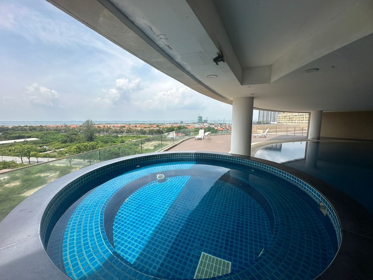 🏢 Alójate en 22 Macalisterz Penang, un elegante rascacielos en el corazón de Georgetown con vistas a Komtar. ✨ Por qué a los huéspedes les encanta: 🏊♀️ Piscina infinita y jacuzzi con vistas al horizonte y a la montaña Espacio 💻 de coworking y wifi de alta velocidad GRATIS 📍 Cerca de Komtar, cafeterías, Gurney Drive y lugares históricos Unidad 🛏️ moderna y acogedora con llegada autónoma y TV inteligente 🚉 Fácil acceso al transporte público, seguridad 24/7, gimnasio en la azotea y tiendas de conveniencia. 🔥 Perfecto para negocios, ocio o una escapada relajante a la ciudad. 🌇✨