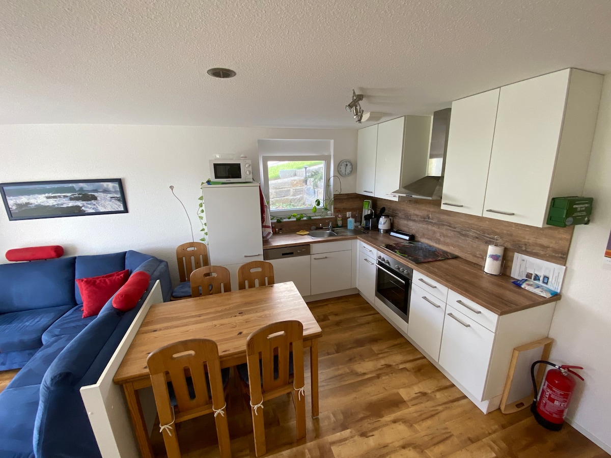 Relájate en este alojamiento especial y tranquilo. El apartamento en el 2º piso ofrece 2 dormitorios, 1 salón y comedor, cocina y baño. La casa es de nueva construcción y, en consecuencia, el interior está decorado con colores brillantes y agradables. El apartamento está en una zona tranquila y tiene una hermosa vista al campo, donde se puede recuperar de la vida cotidiana. Equipamiento: Calefacción por suelo radiante, cocina equipada completa incl. vajilla, etc., ducha a ras de suelo, ventanas del suelo al techo en la cocina-comedor y en el salón.