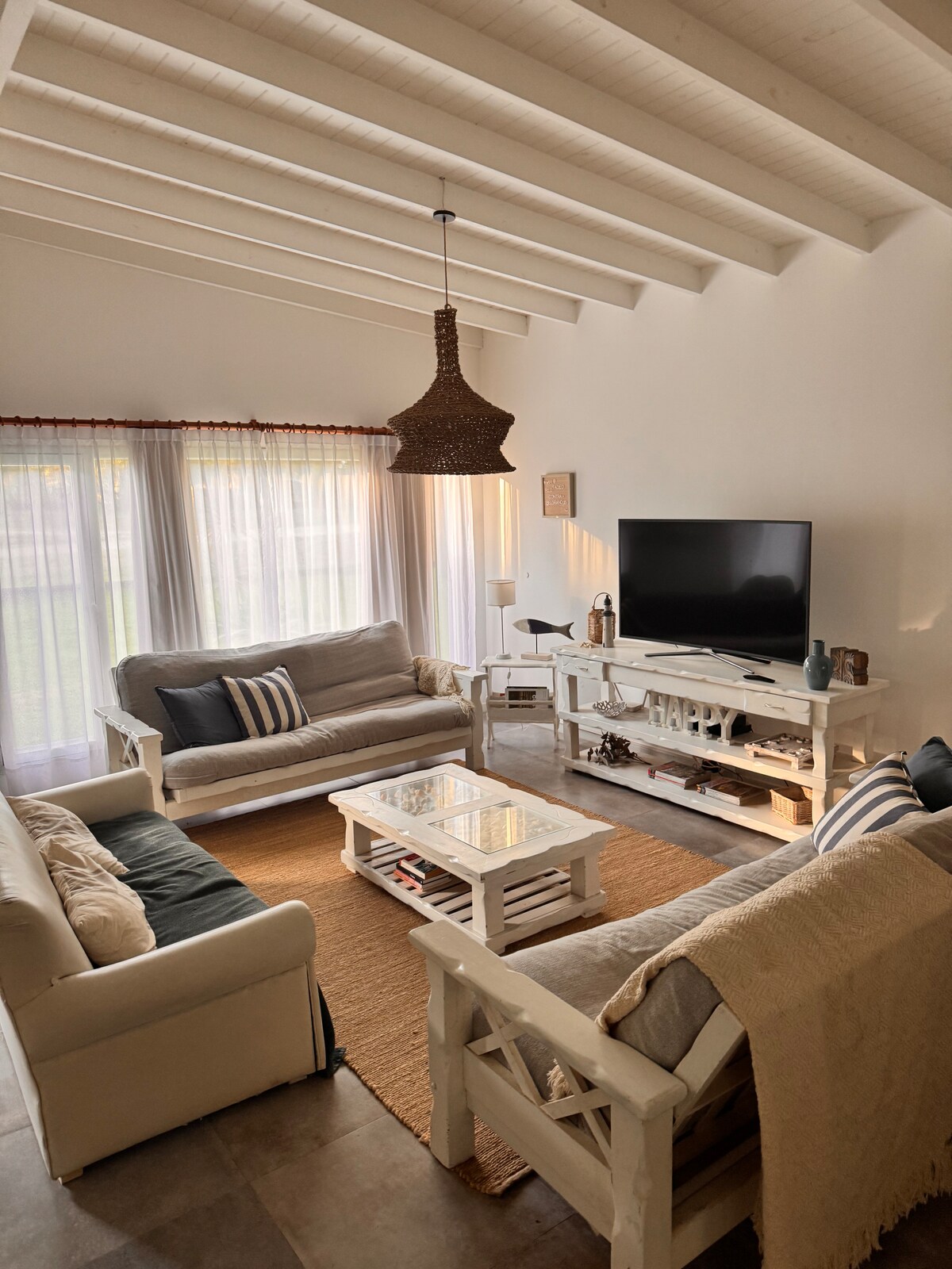 Pensamos esta casa como la sede de los encuentros familiares o con amigos. Cuenta con 3 dormitorios, el principal el suite. Los otros dos comparten un baño que esta en el pasillo. El living, comedor y cocina estan integrados. Android TV. La cocina tiene lavavajillas. La casa tiene un lavadero grande y comodo para todas las cosas de la playa y cuenta con lavarropas. La parrilla esta en la Galeria al lado de la cocina. Hay ducha externa.