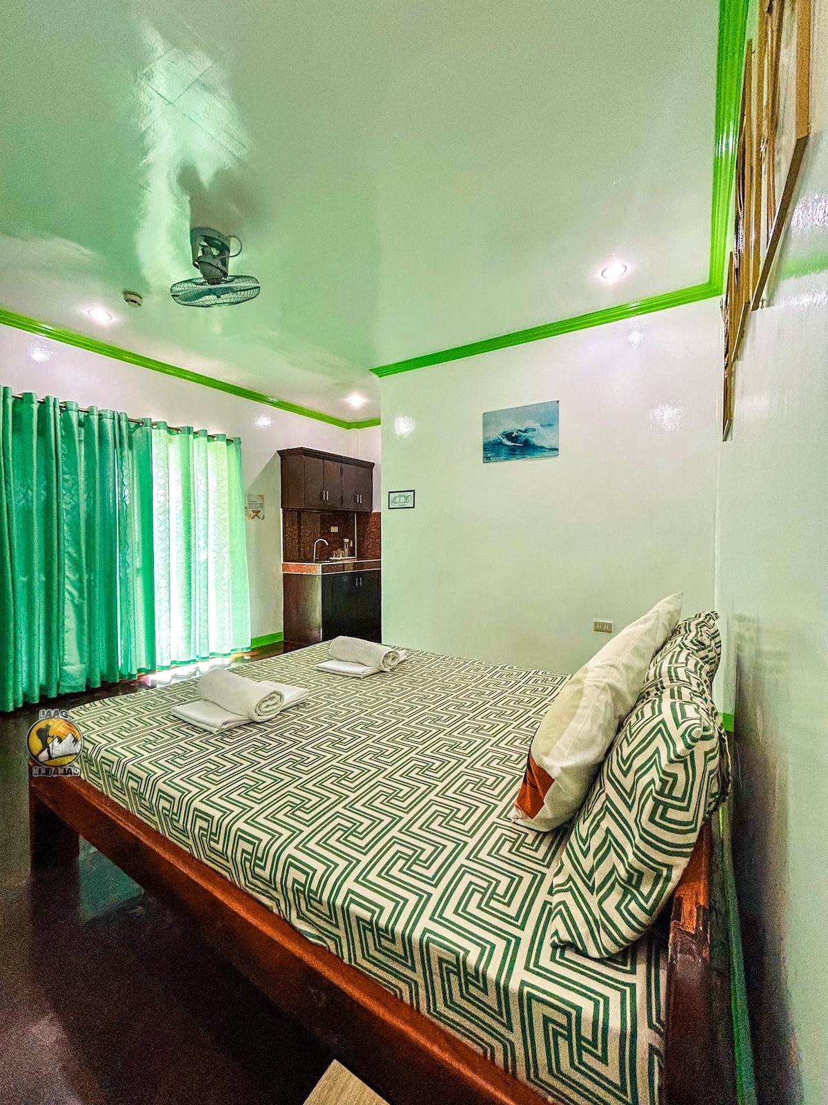 Welcome to Keking’s Surf Guesthouse! This bright, tropical upstairs studio is ideal for surfers, couples & digital nomads wanting to stay close to Siargao’s surf scene in a fantastic location. Located at Jacking Horse and a short walk from Cloud 9, cafés, and restaurants, the space is airy and comfortable. PLEASE NOTE: there is ongoing construction on a neighbouring property, there may be noise between 8AM-4PM, prices are adjusted accordingly. By booking, guests acknowledge this condition.