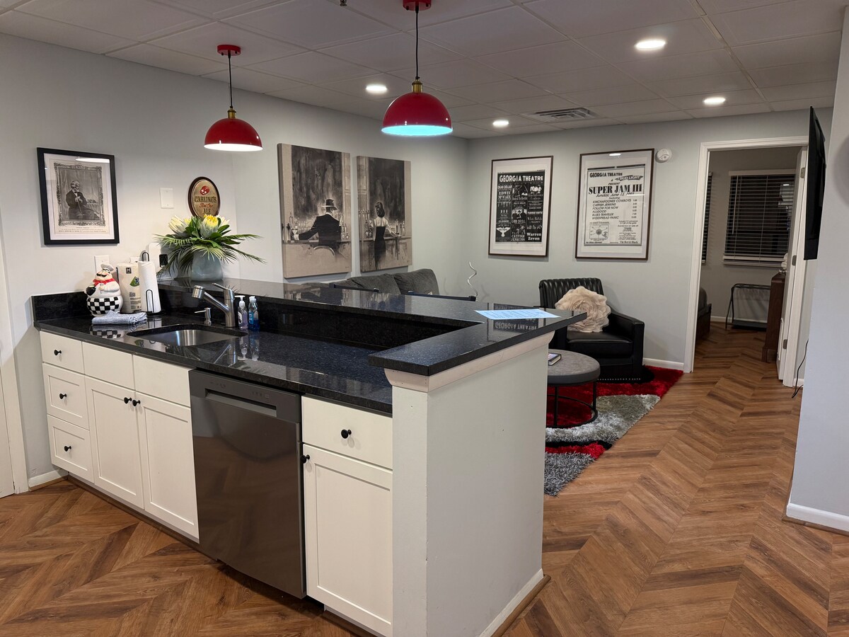 ¡Bienvenido a nuestro acogedor apartamento estudio! Ofrecemos un apartamento privado con entrada independiente en nuestra casa de nueva construcción, a menos de una milla a pie del centro de Atenas y del campus de la Universidad de Georgia. El apartamento tiene entrada privada, aparcamiento en la entrada y cocina americana. Se puede ir caminando a restaurantes del centro, teatros, varios parques, Normaltown y el campus de UGA. Ten en cuenta que escucharás ruido de nuestra familia arriba, por lo que si buscas paz y tranquilidad, esta puede no ser tu mejor opción.