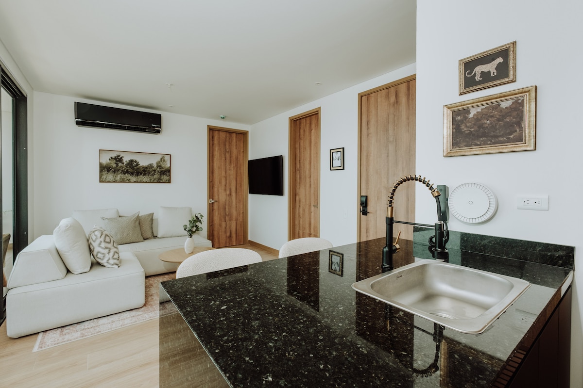 Beautiful apartment located on a quiet corner of Cartagena’s Old Town, steps from La Serrezuela Mall and Plaza San Diego. Recently renovated, it preserves colonial architectural details such as exposed brick walls, coral stone finishes, and abundant natural light, combined with handcrafted wooden furniture. The apartment has air conditioning throughout, hotel-standard linens, soap, toilet paper, TV, and reliable high-speed Wi-Fi—ideal for couples or families seeking comfort and a prime location.
