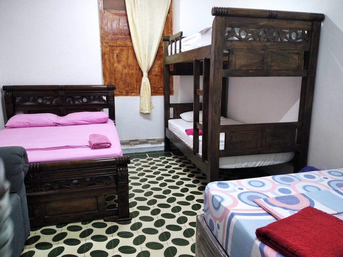 Disfruta de Cartagena desde un espacio hermoso, cómodo, con estilo colonial. Habitación Privada, 1 cama doble y 1 cama nido tamaño sencillo. Aire acondicionado Baño compartido. Ubicado en la calle larga de getsemani, ciudad amurallada. Colchones y lencería de excelente calidad. Por su seguridad no se permite el ingreso de visitantes, ni de trabajadoras sexuales. No se permite él consumo de sustancias psicoactivas dentro del Hostal