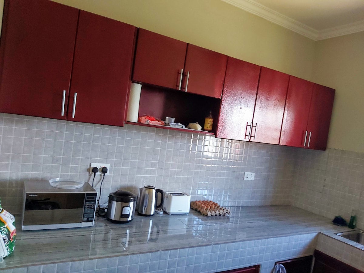 ¡Tu hogar lejos de casa en Accra! • Apartamento de 2 dormitorios en una pequeña comunidad cerrada • A 15 minutos en coche del aeropuerto. • A 15 minutos en auto del centro comercial Accra Mall. • A 8 minutos en coche del centro comercial ANC y alrededores restaurantes • A 5 minutos a pie de tiendas de conveniencia y una farmacia. • Generador en espera disponible.