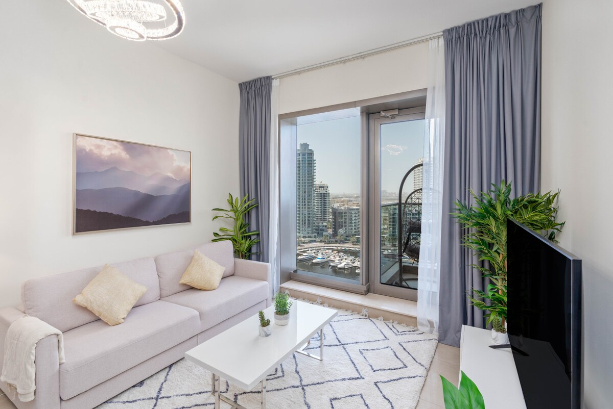 Bienvenido a un apartamento de 1 dormitorio de nuevo diseño ubicado en uno de los edificios más exclusivos de Dubai Marina. El apartamento ofrece una vista completa del puerto deportivo y los interiores fueron completamente curados por diseñadores profesionales, con una estética limpia y contemporánea y acabados de calidad en todas partes. Encontrarás un cómodo dormitorio, un moderno baño y una sala de estar abierta. El edificio cuenta con excelentes servicios, como piscina, gimnasio, espacios de coworking y elegantes zonas comunes.