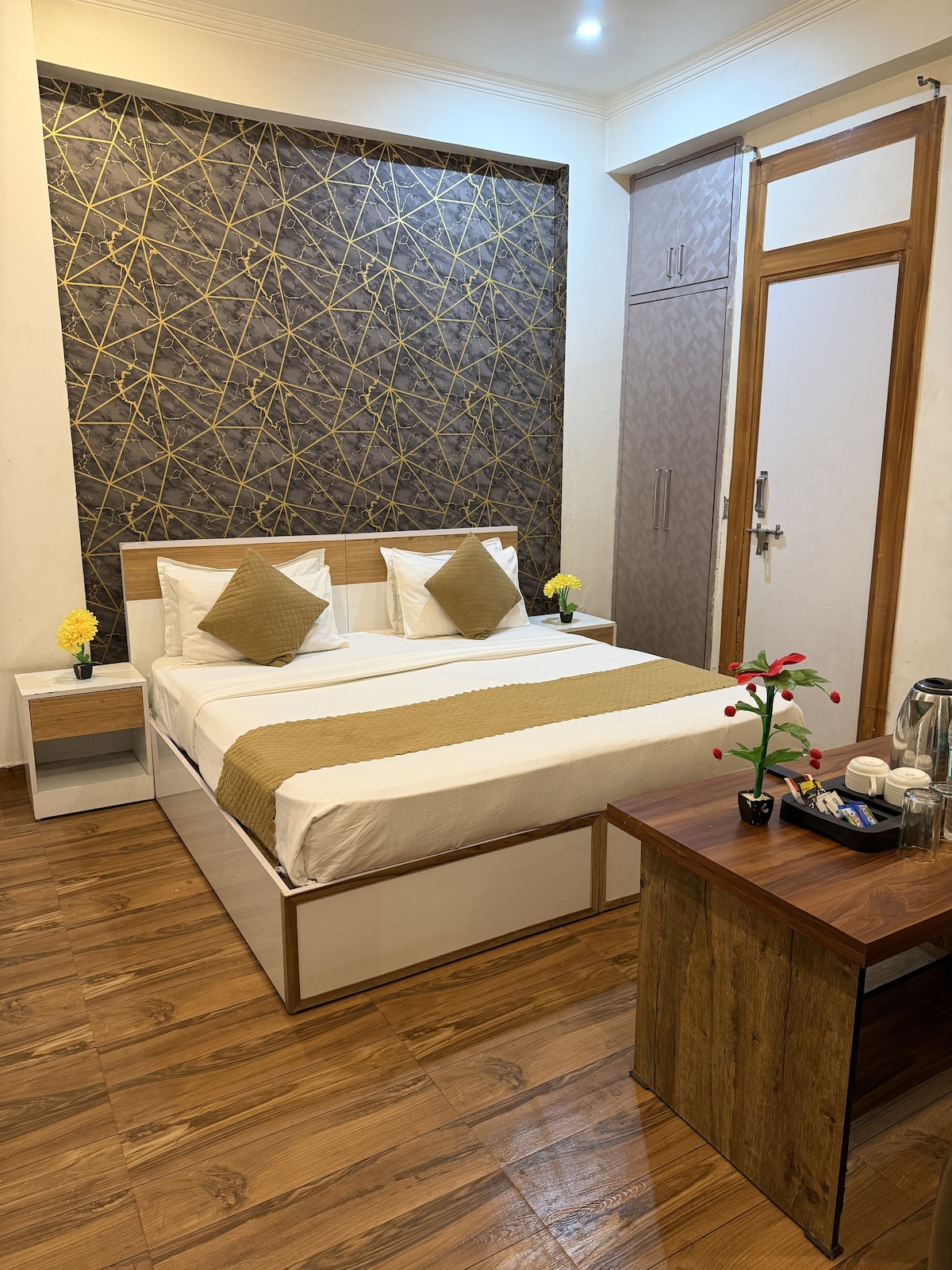 Habitación de hotel ◆cómoda y elegante perfecta para personas que viajan solas o grupos pequeños. ◆Fácil acceso a : Hospital ✔Sir Ganga Ram City – 500 metros Hospitales ✔Apollo Spectra: 700 metros ✔Karol Bagh Market & Metro Station – 1 km Aeropuerto Internacional de ✔Indira Gandhi: 19,9 km ◆La habitación incluye TV, mini refrigerador y baño privado. ◆Restaurante en las instalaciones con amplios asientos y aire acondicionado. ◆Acogedora zona de recepción con lujosos sofás, TV y ascensor.