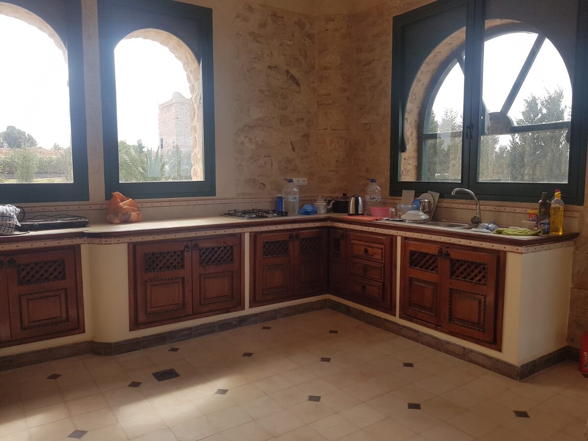 Disfrute en familia o con amigos de este fabuloso alojamiento que ofrece buenos momentos en perspectiva. Esta magnífica villa se encuentra en los alrededores de la ciudad de Esauira en pleno bosque de argán . Dispone de 4 dormitorios, 5 baños, una gran piscina de 10 m/5 para refrescarse con un gran jardín lleno de olivos , wifi de fibra óptica, cocina bien equipada, chimenea, terraza, mesa de comedor interior y otras dos exteriores.........