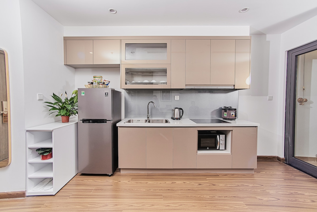 Edificio de nueva construcción con vista al lago que es adecuado para alquileres de corta a larga duración, que tiene una lavandería compartida totalmente funcional más un espacio de trabajo conjunto de cocina y jardín frente a un hermoso lago. Si planeas tener un viaje largo/de negocios en Hanói, este es un lugar perfecto para alojarte con un ambiente tranquilo de la habitación y una cocina totalmente equipada para cocinar, lavandería con lavadora y secadora, espacio de trabajo conjunto en un hermoso jardín.