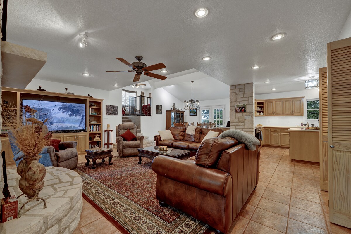 The Pedernales A-Frame epitomizes luxury... Nestled on an expansive 8-acres bordering the serene Pedernales River and positioned atop a tranquil hill, this cabin boasts sweeping vistas of the picturesque Texas Hill Country. Its interior exudes opulence with exceptional craftsmanship, acclaimed design, premium amenities, and a wealth of luxurious finishes that cater to even the most discerning tastes. We look forward to having you...