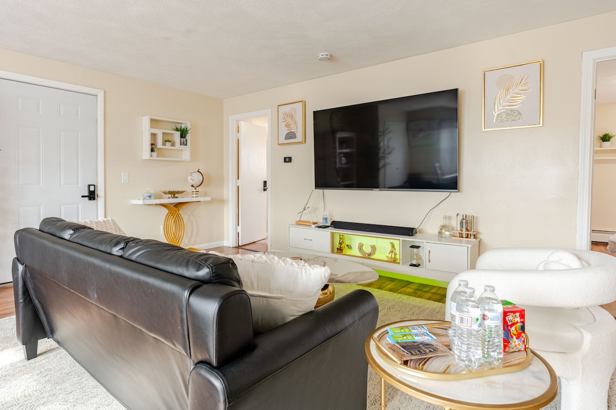 Apartamento de un dormitorio con cama tamaño queen y sofá cama tamaño queen en la sala de estar. Cocina completa y baño 3/4. Cerca del centro de New Bedford con muchas opciones de restaurantes y transbordadores a Martha's Vineyard, Nantucket y Cuttyhunk. A poca distancia a pie de la playa (1/4 de milla), Fort Rodman y Fort Taber, donde hay un museo militar y un sendero para caminar/ir en bicicleta. Registro de entrada flexible, para que puedas llegar cuando te convenga (a partir de las 9:00 h). No se permiten invitados ni fiestas.