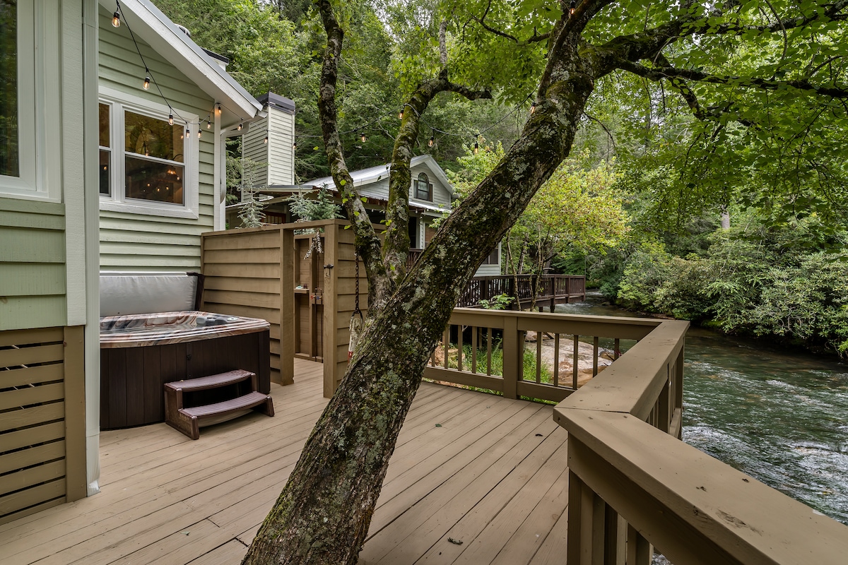 UPGRADED with lounge chairs,espresso machine,and ROCK BEACH! Welcome to Cartecay Castaway, a one-of-a-kind retreat nestled right on the banks of the Cartecay River. Just 10 minutes from downtown Ellijay and charming orchards, this cottage is made for romance—soak in the riverside hot tub, shower outdoors, and sip wine by the fire. Families are welcome too, with a cozy bunk room and kid-friendly amenities that make it easy to relax and reconnect together. Cook on the BIG Green Egg & Blackstone