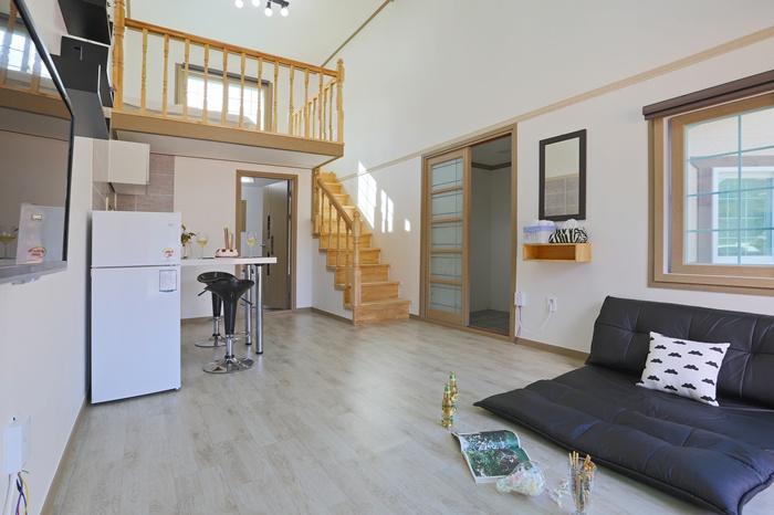 Es una casa de campo con varios árboles frutales ubicada a una altura de 420 m bajo el Samdobong de la Montaña Democrática, lejos de las bulliciosas atracciones turísticas del Parque Nacional Deokyusan y Muju Resort. Se tarda unos 10 minutos en llegar a Taekwondo Won y Bandiland, y 25 minutos en llegar a Deokyusan Muju Resort. En el interior del pueblo, también puedes disfrutar de la belleza natural del valle. Uncle House es el edificio de estructura de madera de estilo americano más aislado diseñado y construido por la prestigiosa empresa de construcción de madera de Seúl. El techo es alto, el verano es fresco y el invierno es una casa cálida, una vista alta y amplia, y un lugar caliente para disfrutar de la chimenea con vistas a las estrellas. El primer piso es el espacio de la pareja de anfitriones, y los 56 m2 (incluida la terraza) en el segundo piso es la casa de huéspedes. Tiene una entrada independiente y no es una casa incómoda porque hay un anfitrión, pero es más apreciada porque puedes obtener ayuda y servicio inmediatos. Uncle Style BBQ es un gran lugar para una familia estadounidense, y las habilidades gastronómicas acompañadas por la casa del tío son muy talentosas. El solárium con una chimenea privada al aire libre es por mucho el mejor. ♡