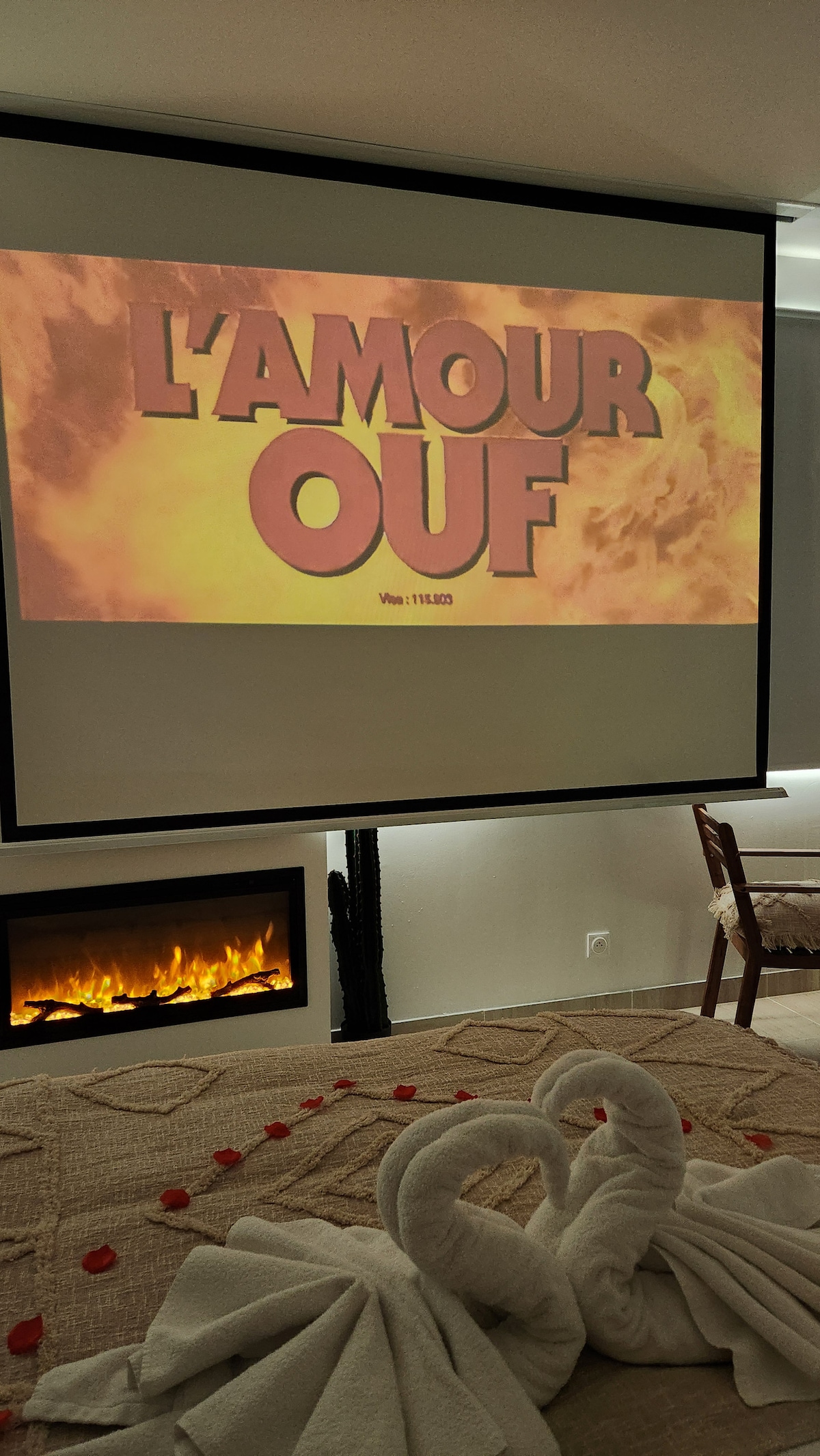 Découvrez Chic & Jacuzzi, un lieu d’exception alliant confort et modernité. Profitez d’une baignoire balnéo haut de gamme avec télévision intégrée pour des moments de pure détente, d’une douche à l’italienne équipée de luminothérapie, et d’un lit King size pour des nuits luxueuses. La cheminée électrique à ambiance personnalisable et les spots lumineux aux couleurs modulables créent une atmosphère unique et chaleureuse. Un véritable cocon de bien-être et de raffinement pour un séjour inoubliable
