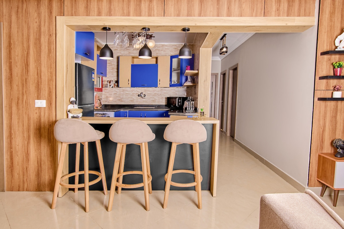 Vuelve a conectarte con tus seres queridos en este lugar apto para familias. Es un lugar de lujo con vistas a las pirámides, la cara de la Esfinge y el Gran Museo Egipcio. El lugar se distingue por los servicios disponibles a su alrededor, como Orange Market, una farmacia, una tienda de comestibles, una panadería y un restaurante. Se distingue por estar cerca de las pirámides, donde puedes caminar para llegar a ellas. Este alojamiento tiene capacidad para una familia de 6 personas.