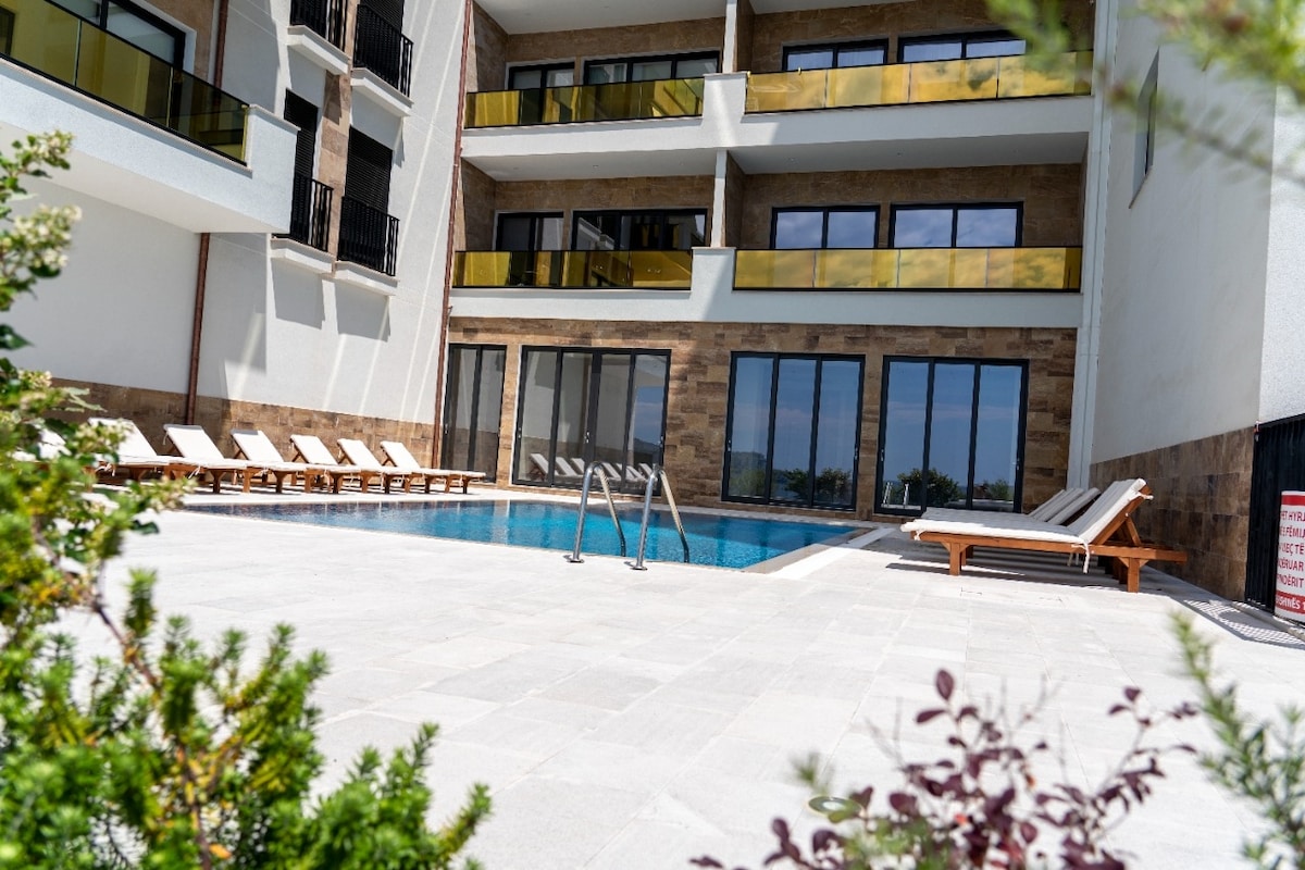 Elegante apartamento de 85 metros cuadrados, ubicado en '' Golden Beach Residence'' con una excelente vista y poderosamente equipado, ubicado en una zona muy tranquila junto a las playas, con piscina privada. Ideal para parejas y familias que quieran relajarse y disfrutar de Saranda en todas las estaciones. El apartamento le sirve con horno, nevera, tazas, platos, etc... Todo lo que necesita para hacer el desayuno o una comida. Te encantará este lugar, que está ubicado frente a la playa. Este lugar único tiene su propio estilo.