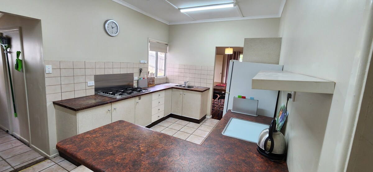 Our Queenslander split level house is situated in the heart of Gladstone, backs onto bushland & less than 5 minutes from shops. We live upstairs, the lower half is your self-contained unit - kitchen/lounge, master bedroom, ensuite and 'Beach Room' (2nd bedroom). Please note, all 4 rooms are adjoining and there is no internal walkway around the ensuite when in use, other than from outside. The Beach Room boasts the bushland view.
