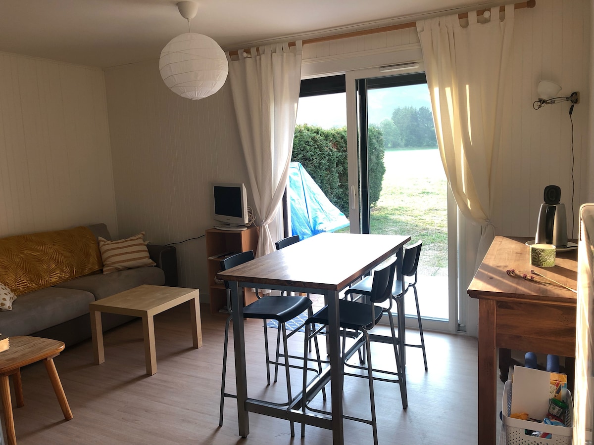 Este alojamiento tranquilo ofrece una estancia relajante para toda la familia. Es minimalista (20 m²) pero muy cálido y funcional. Es ideal para una pareja o una familia con un niño. Con una ubicación ideal, estará a dos minutos a pie de todas las tiendas del pueblo (tienda de comestibles, carnicería, panaderías, farmacia, consultorio médico, camiones de pizza, restaurante…). Ropa de cama, toallas, wifi y limpieza incluidos en el precio.