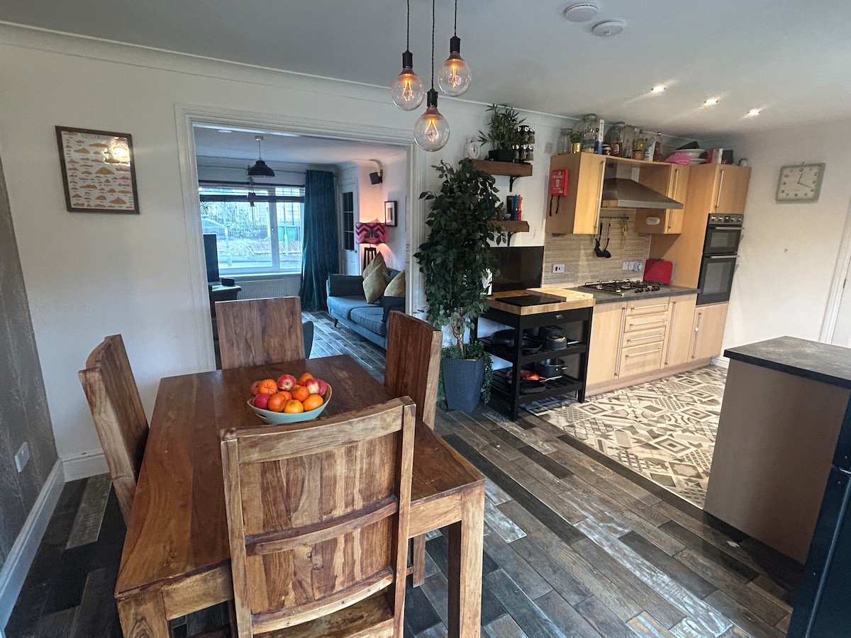 Large and peaceful 3 bedroom comfortable hideaway - can sleep up to 6 adults (3 double beds). I offer a master bedroom (1 x king bed), two other bedrooms (1 x double bed & 1 x king bed). Dining kitchen, and dining living room, one bathroom (with bath & shower), large living room (dining table extends), TV, firestick, hi-fi. Nice parks & many restaurants closeby, organic bakeries & good bars. My flat is in ‘Dennistoun’ which is fun & has great community spirit.